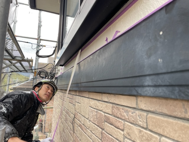 2階周りのシーリングの打ち替えと打ち増しを行っております!