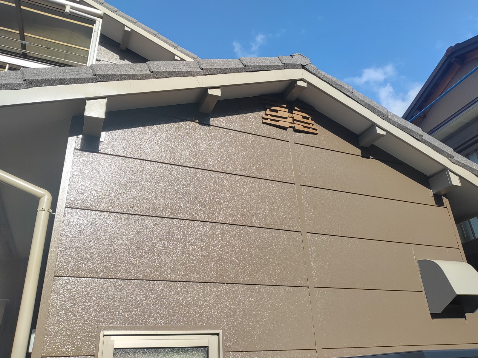 軒天井・・・軒裏天井には透湿性と言って、防カビ・アク止め、湿気を逃がしてくれる効果がある「弱溶剤形一液内外壁用アクリル系上塗材 」と言う塗料を使用しています。