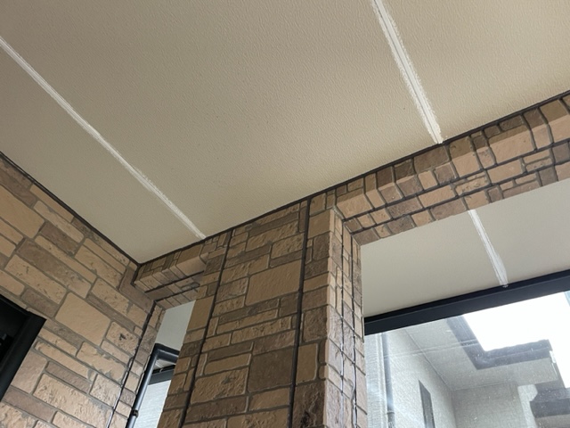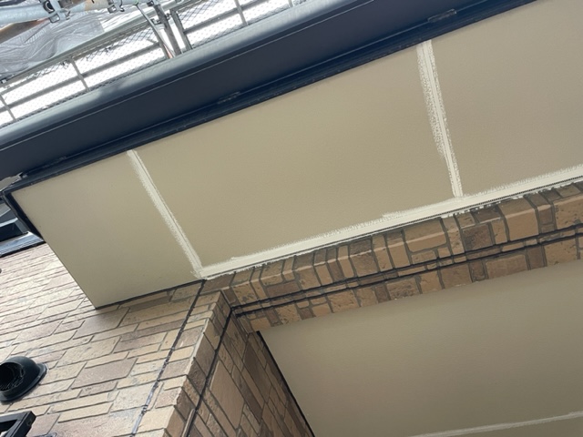 本日は、シーリングの施工と軒天鉄部の錆止めをさせて頂いております。