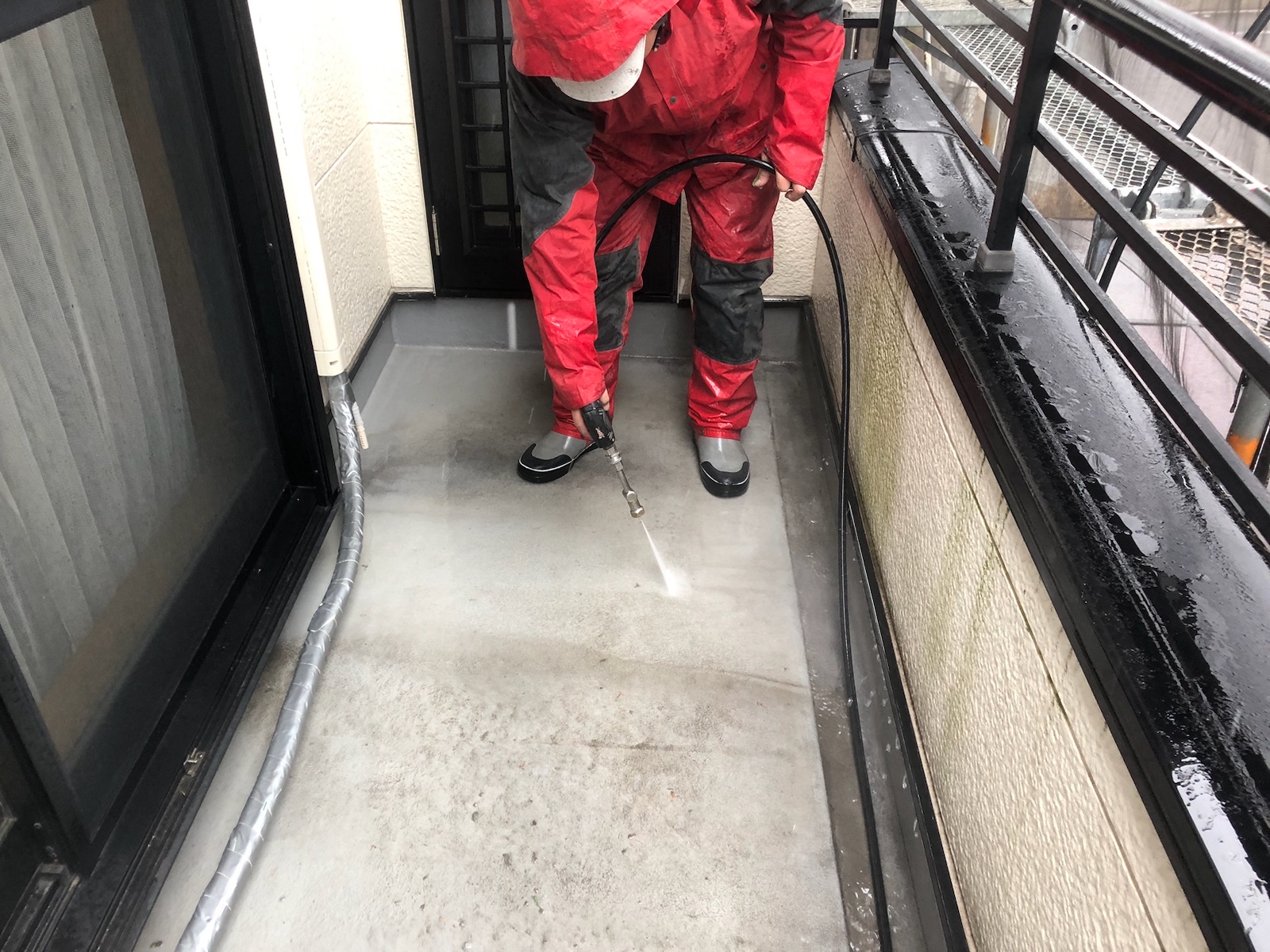 本日は、ケレン作業、高圧洗浄をさせて頂いております。