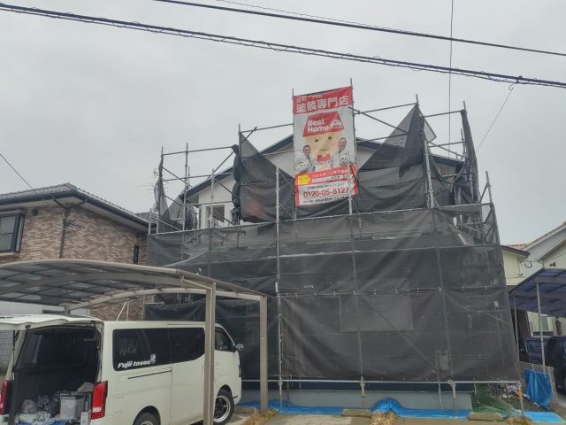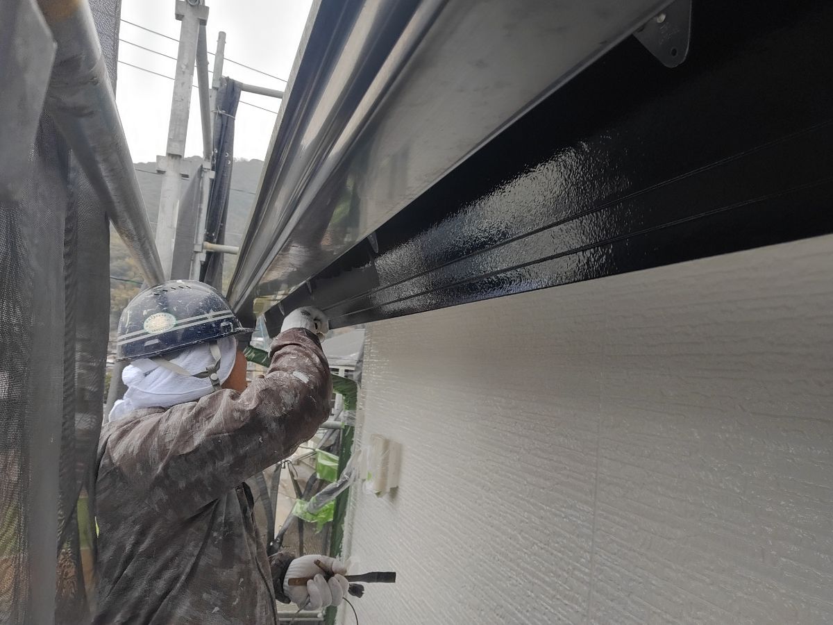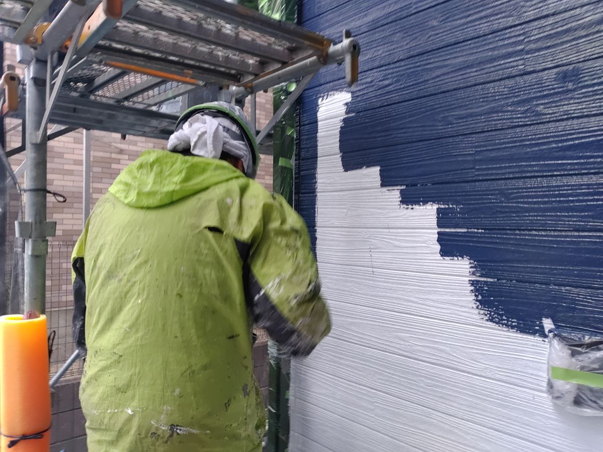 本日は、外壁上塗り1回目、付帯塗装をさせて頂いております。