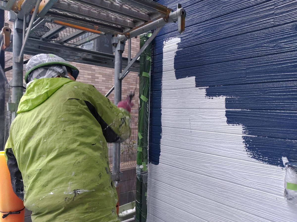 本日は、外壁上塗り1回目、付帯部塗装をさせて頂いております!