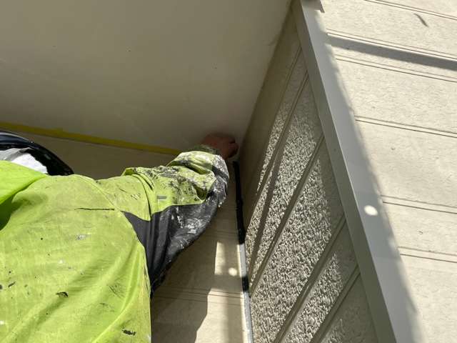 軒と外壁の絡みなどのシーリングは養生をさせて頂いております!