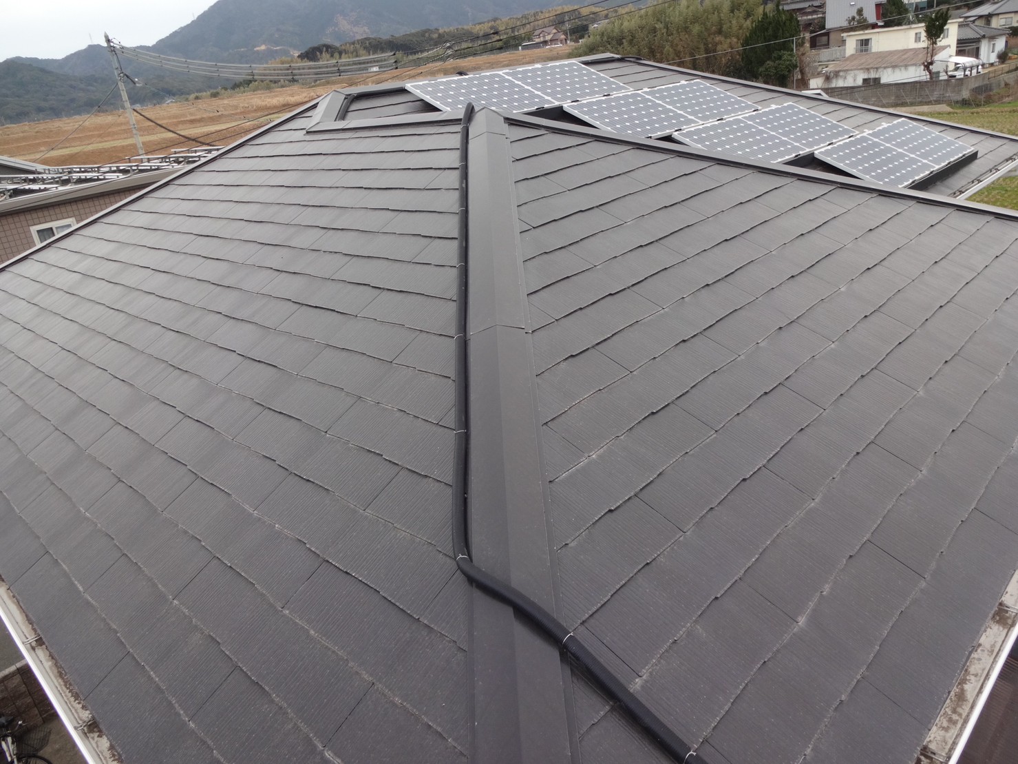本日、下関市にてコロニアル屋根及びサイディング外壁塗装から3年後の定期点検にお伺いしました。