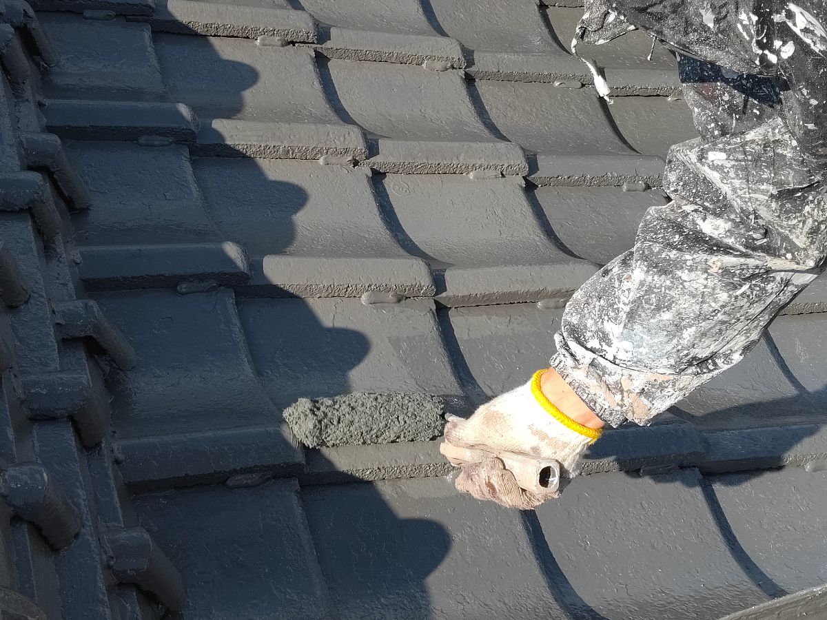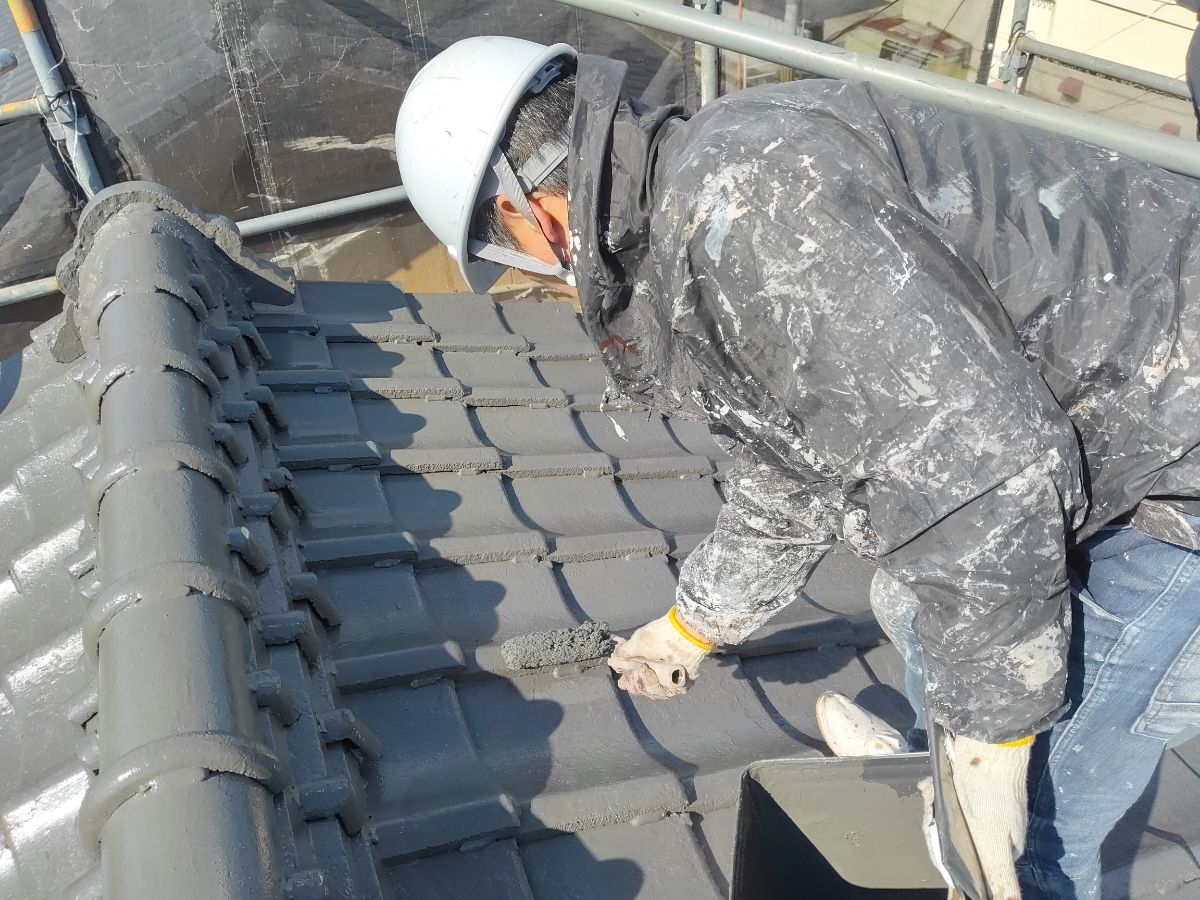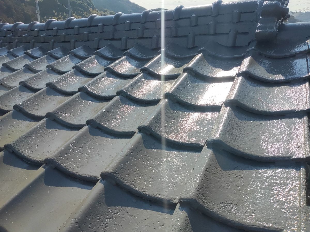 本日は、屋根塗装 上塗り2回目をさせて頂いております。