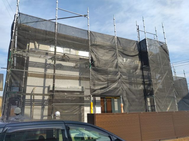 本日は外壁中塗り1回目をさせて頂いております!