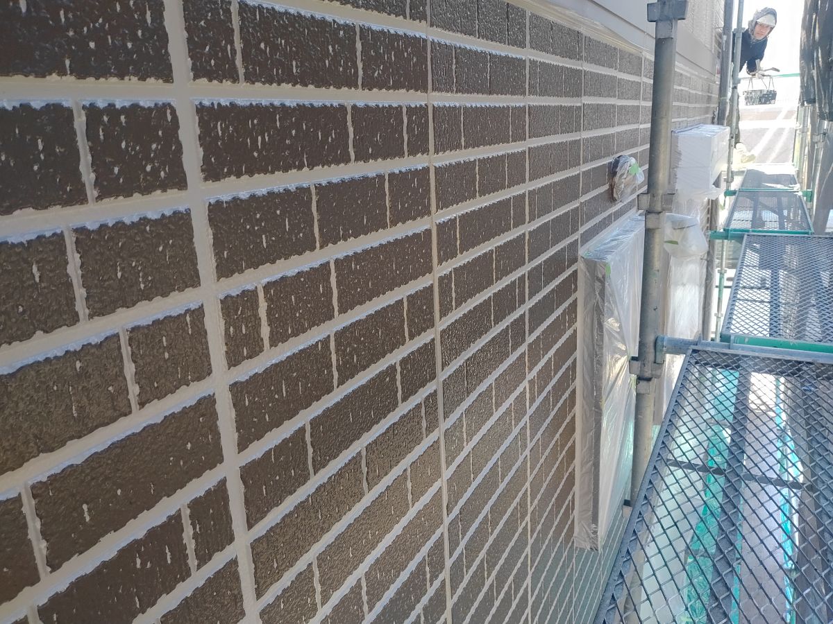 本日は、外壁上塗り4回目、養生バラシをさせて頂いております。
