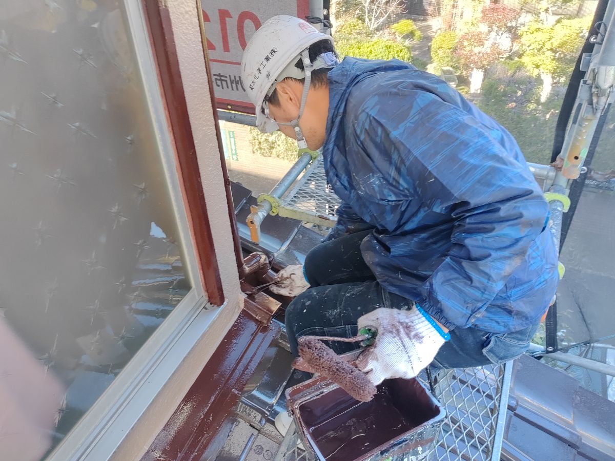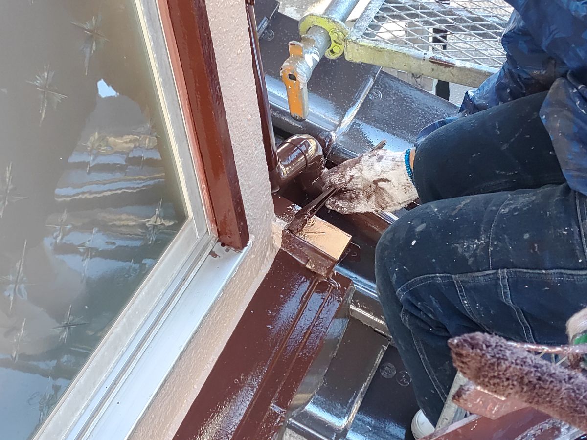 本日は、付帯塗装、屋根上塗り1回目続きをさせて頂いております。