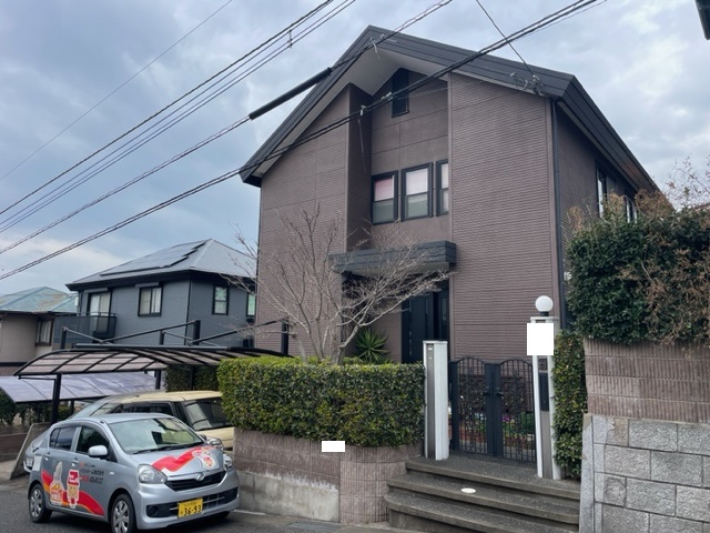本日、若松区東二島にてコロニアル屋根及びサイディング外壁塗装から8年後の定期点検にお伺いしました。