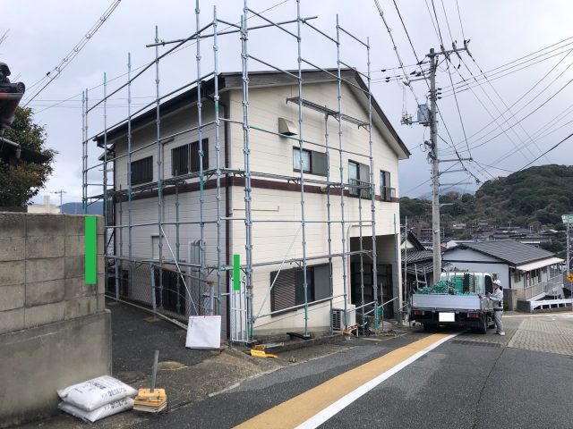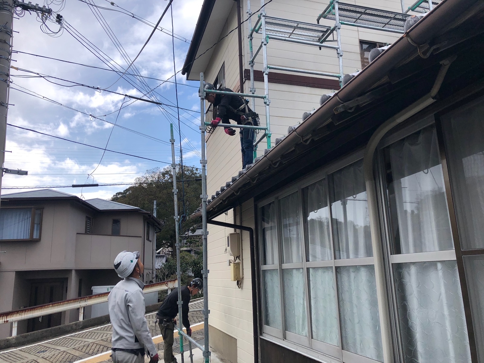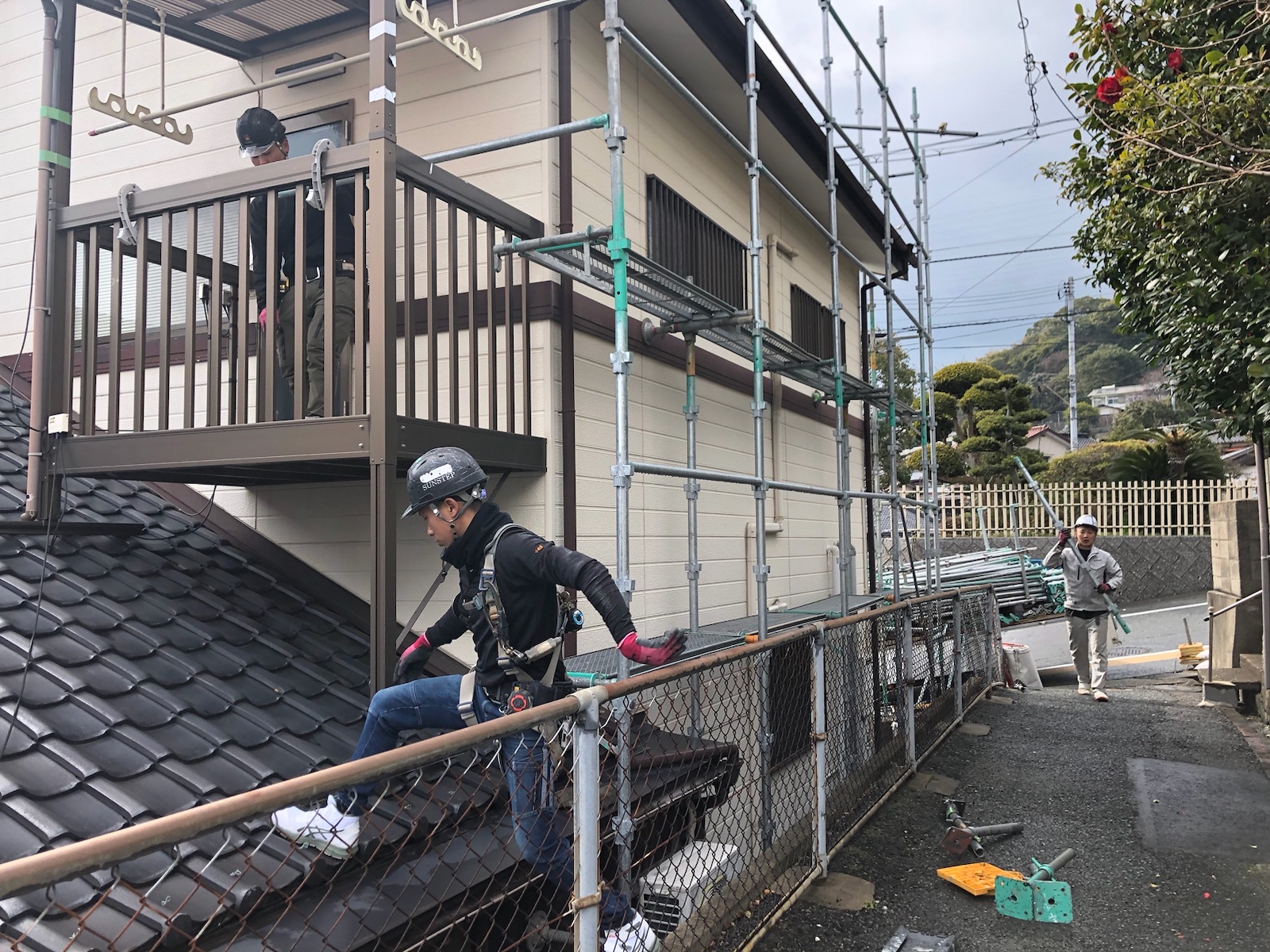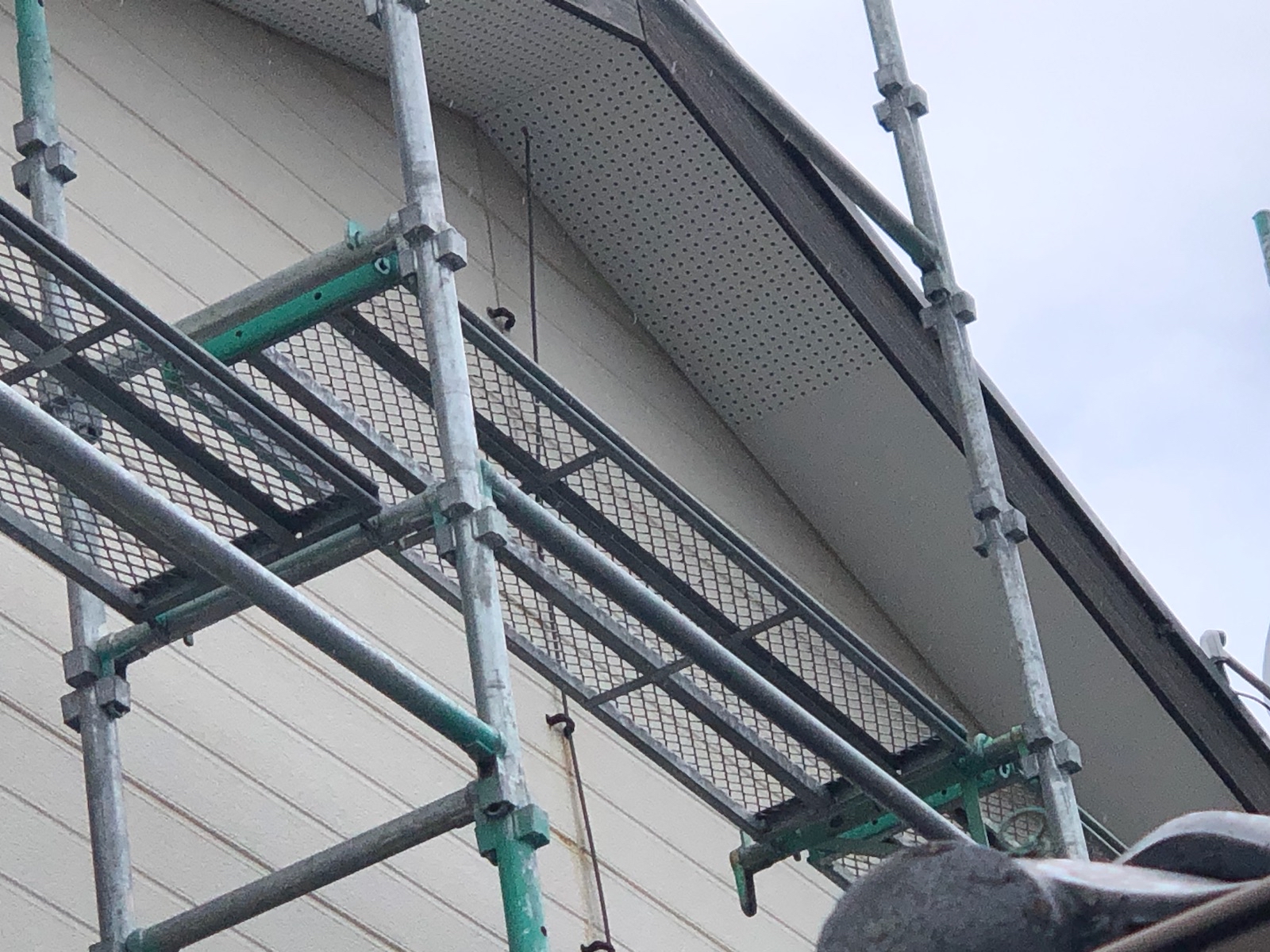 塗装職人さんが、安全且つ塗装しやすいように足場を組んで頂いております!