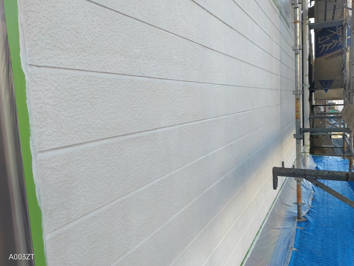本日は、外壁下塗り1回目、破風板金巻き工事をさせて頂いております。