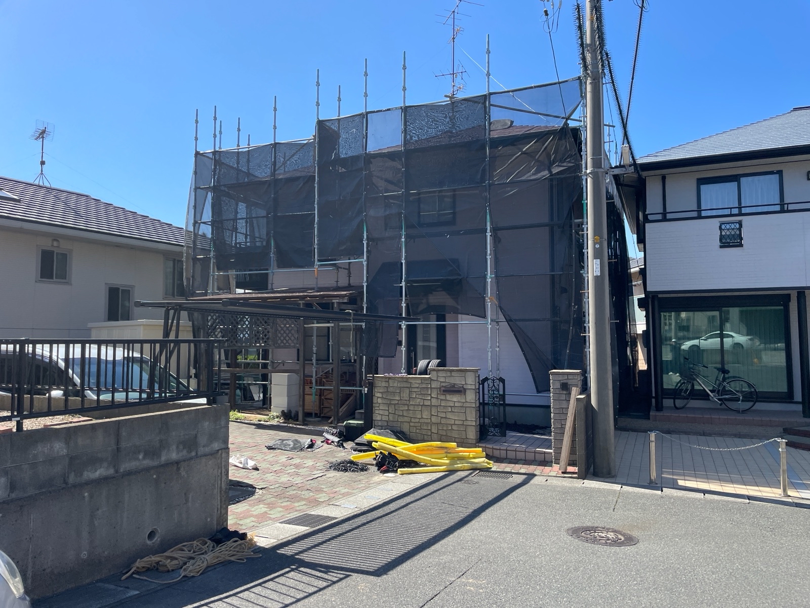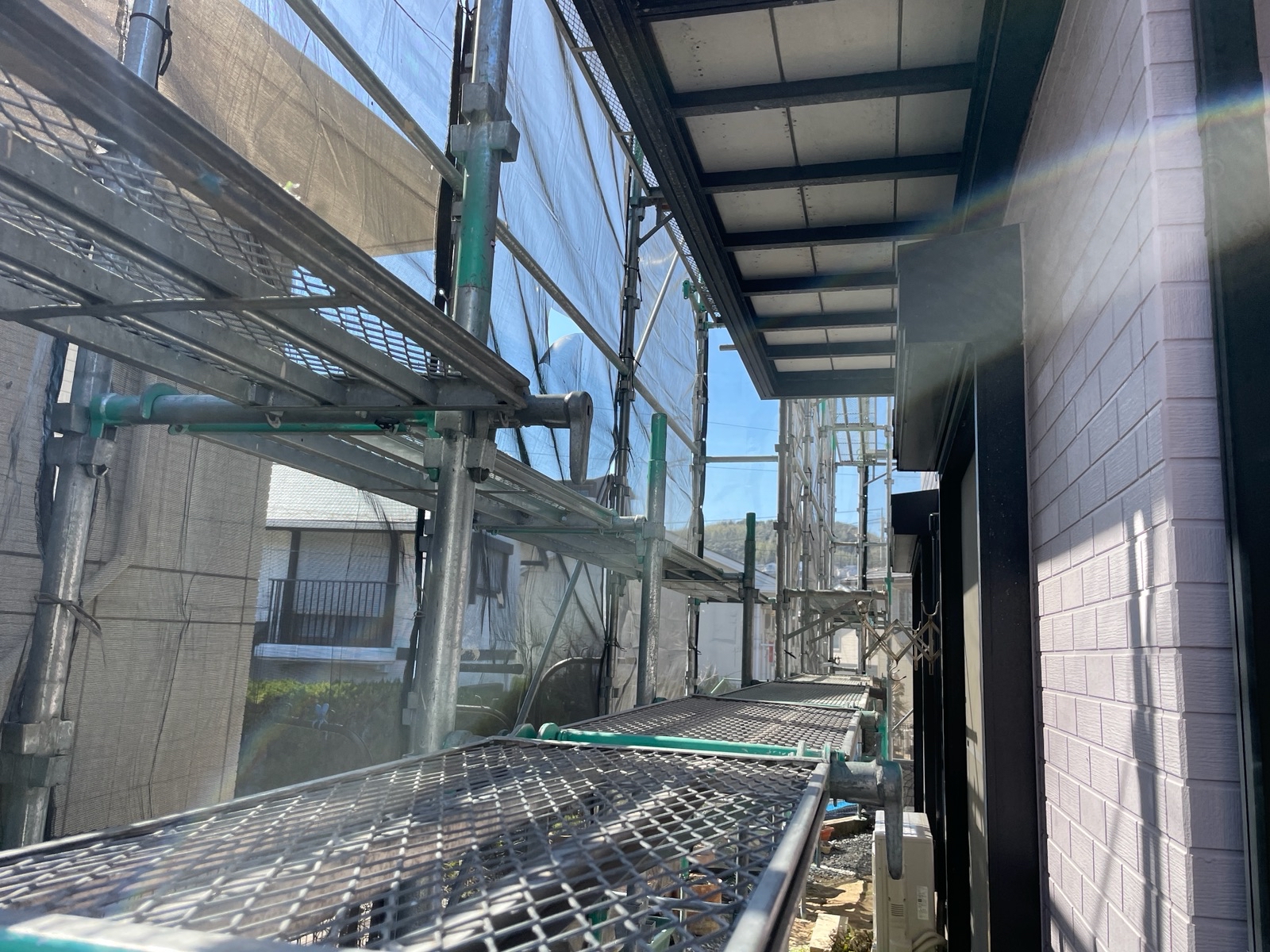 塗装職人さんが、安全且つ塗装しやすいように足場を組んで頂いております!