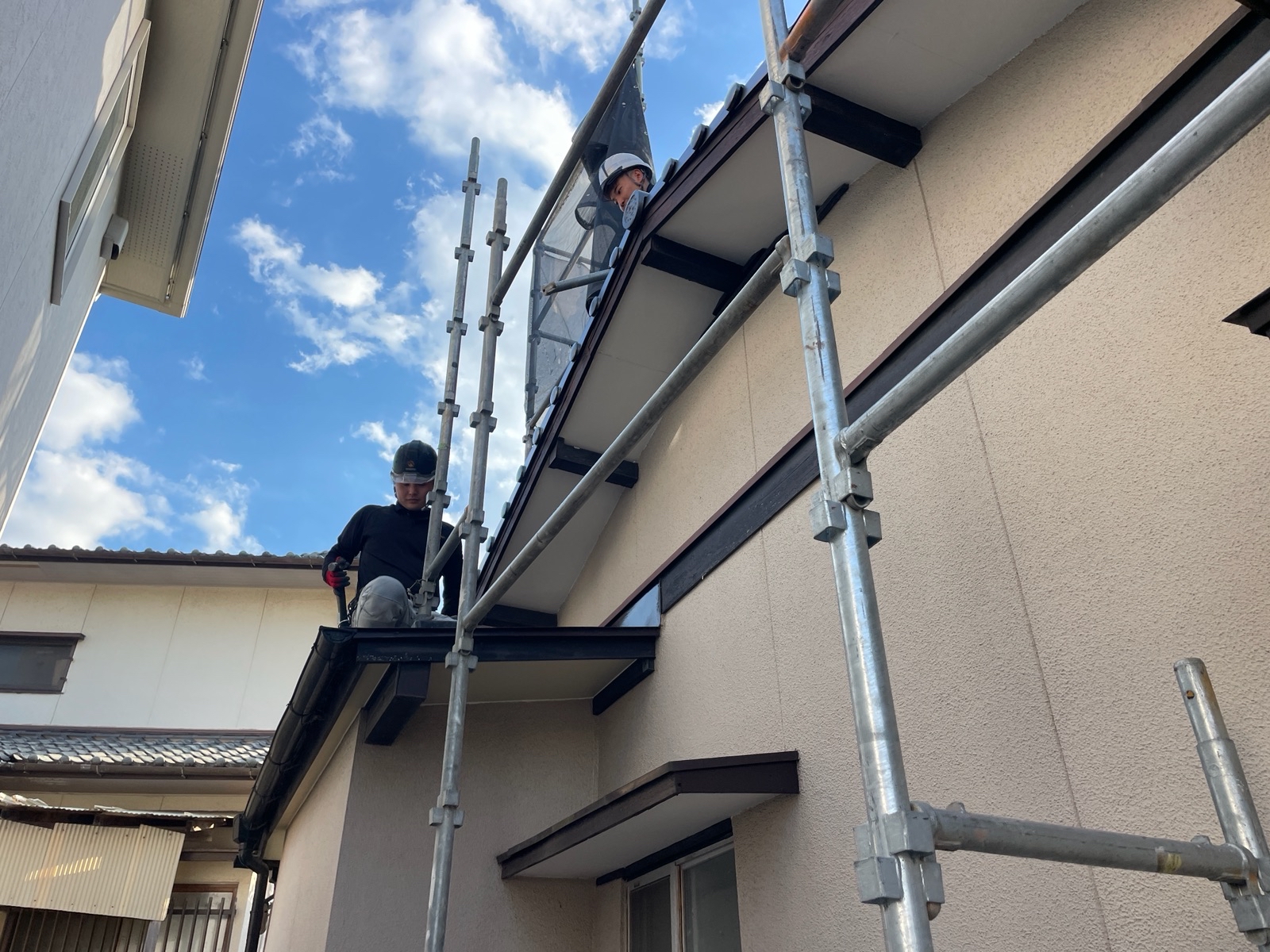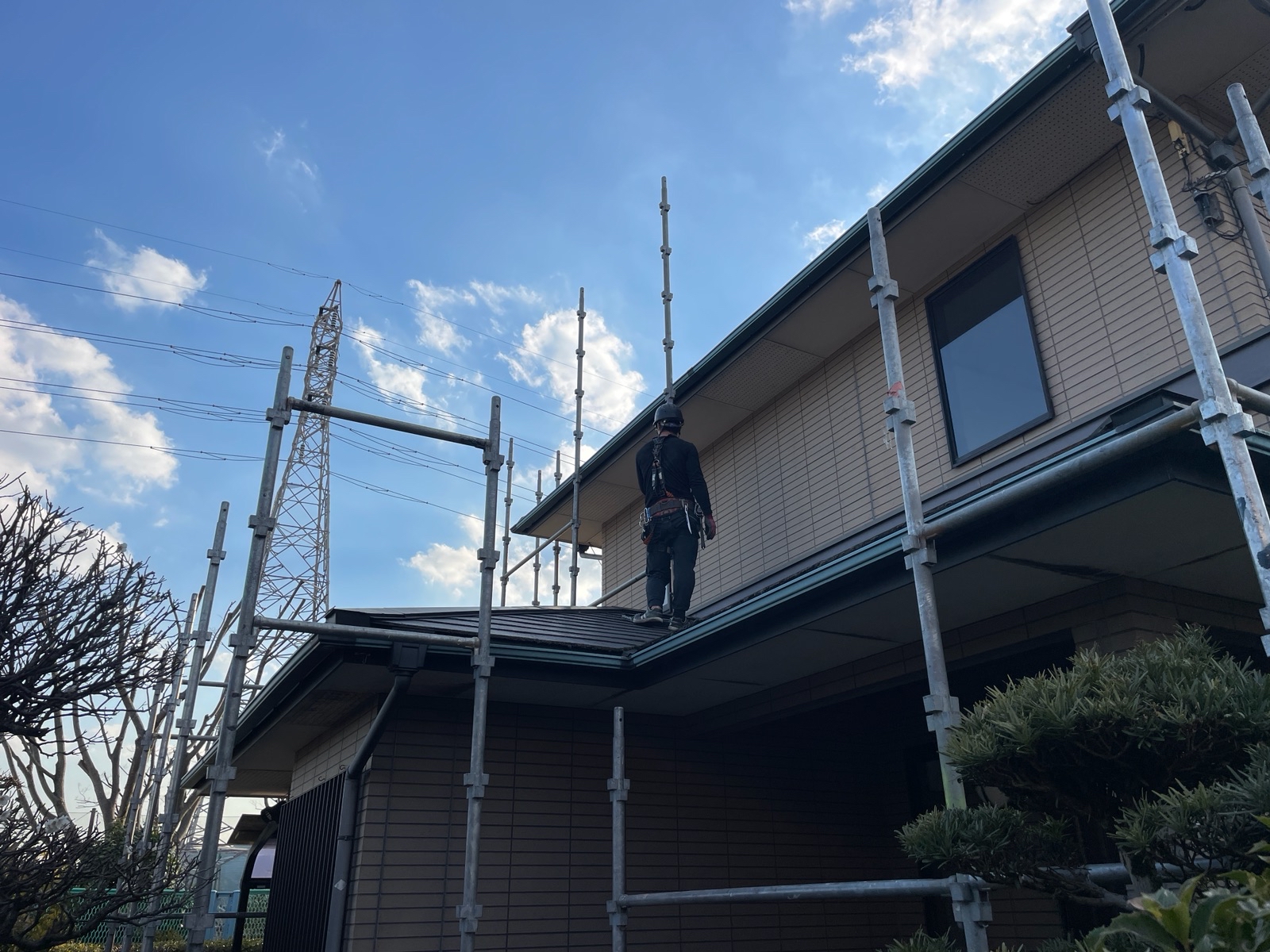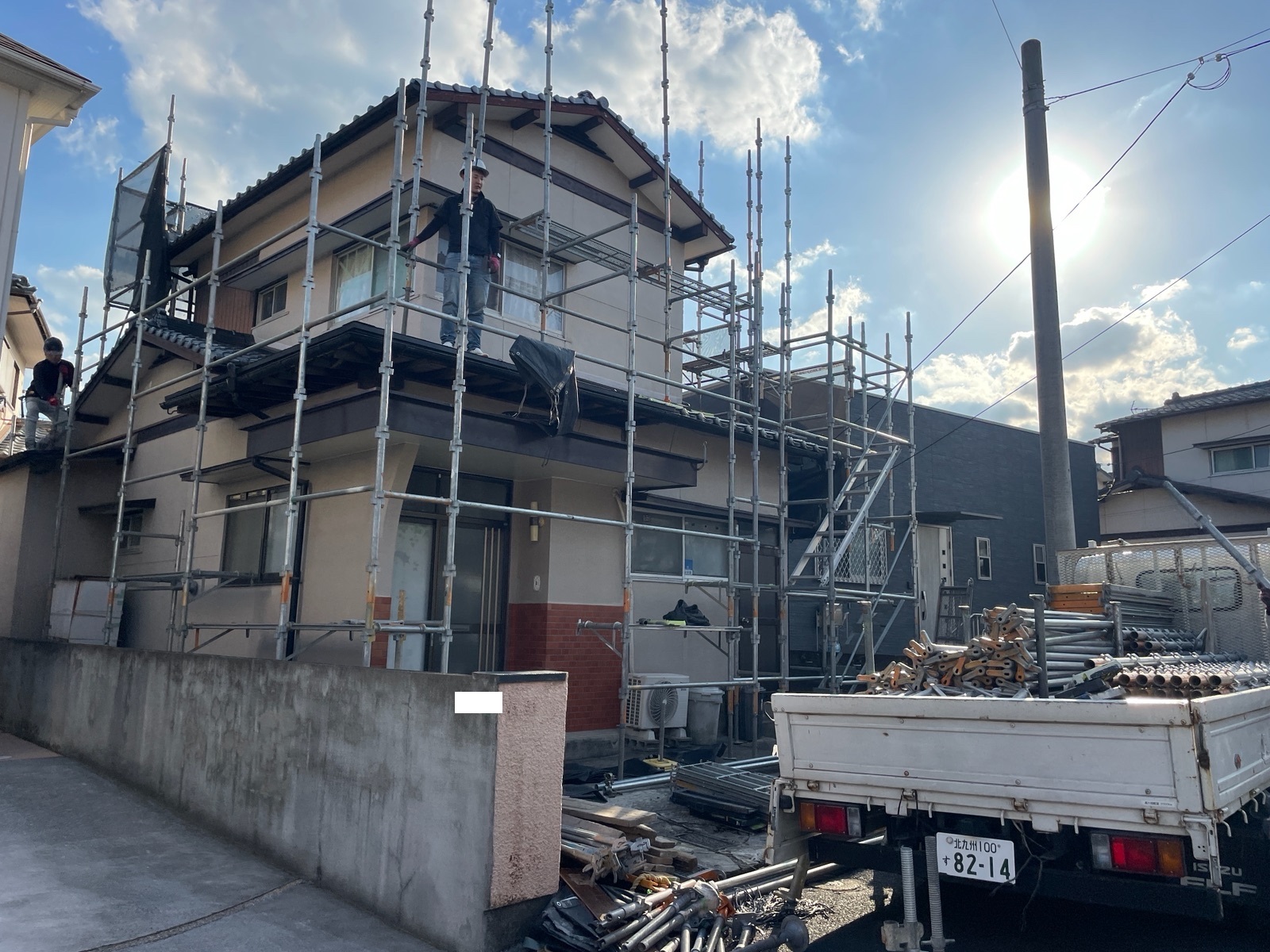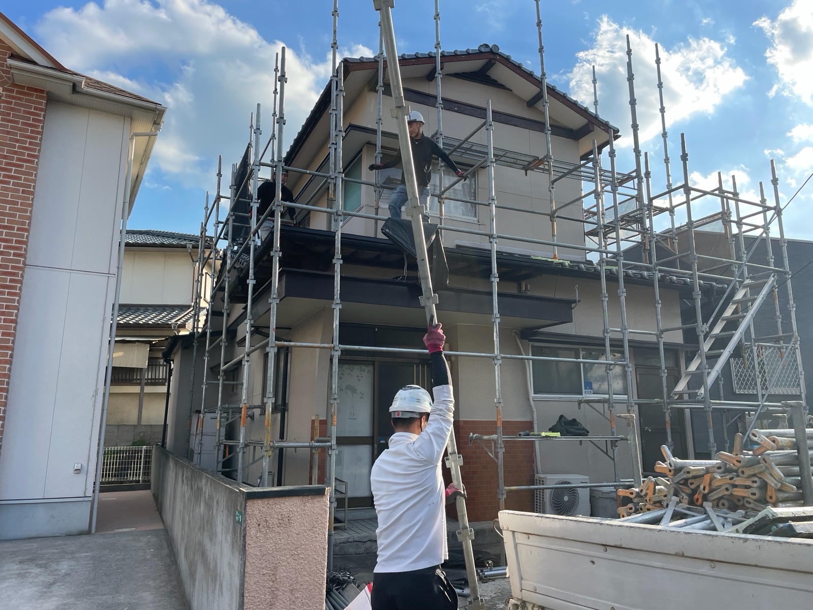 塗装職人さんが、安全且つ塗装しやすいように足場を組んで頂いております!