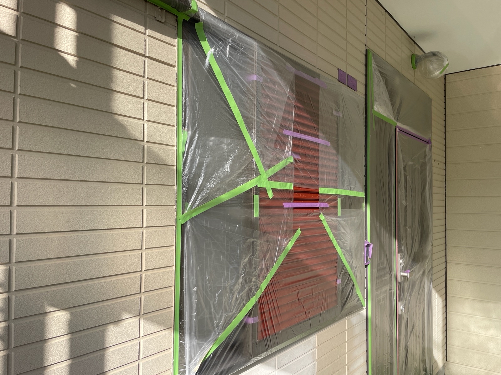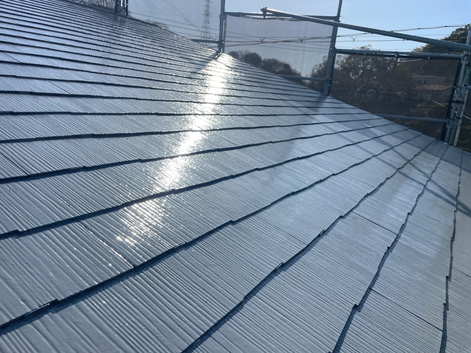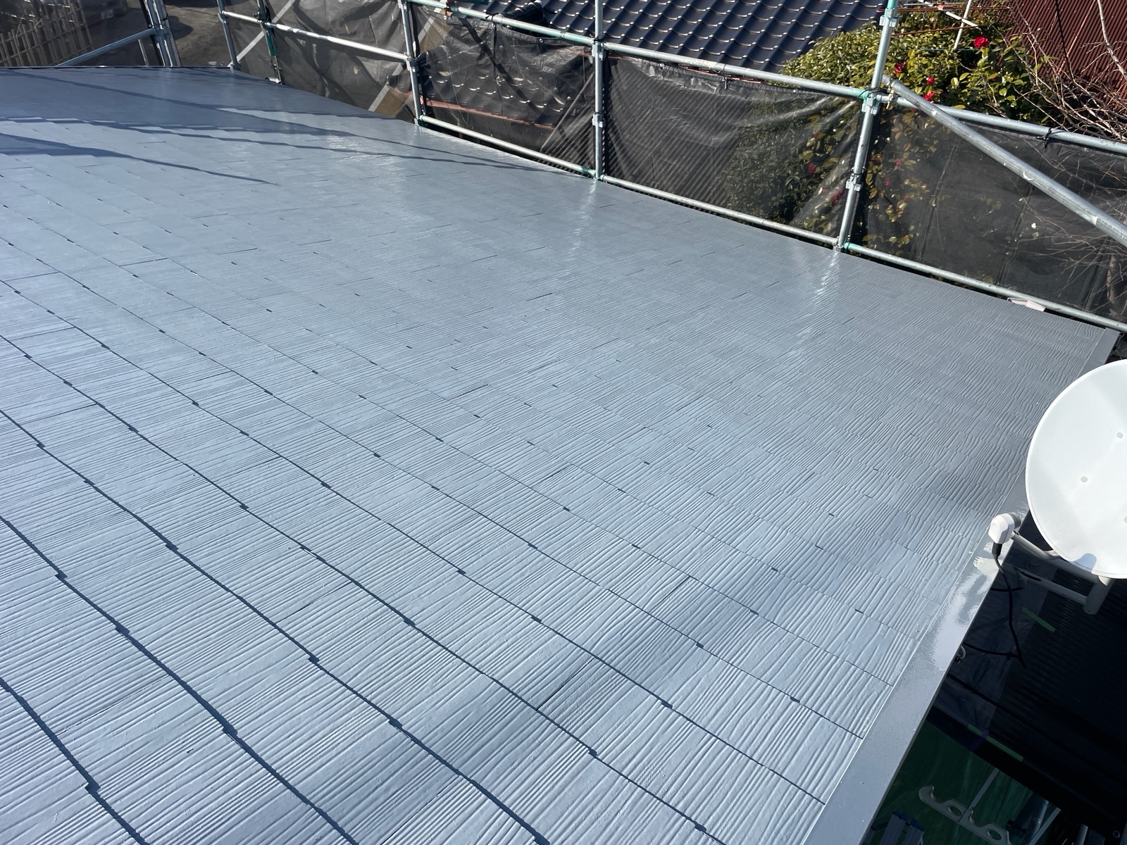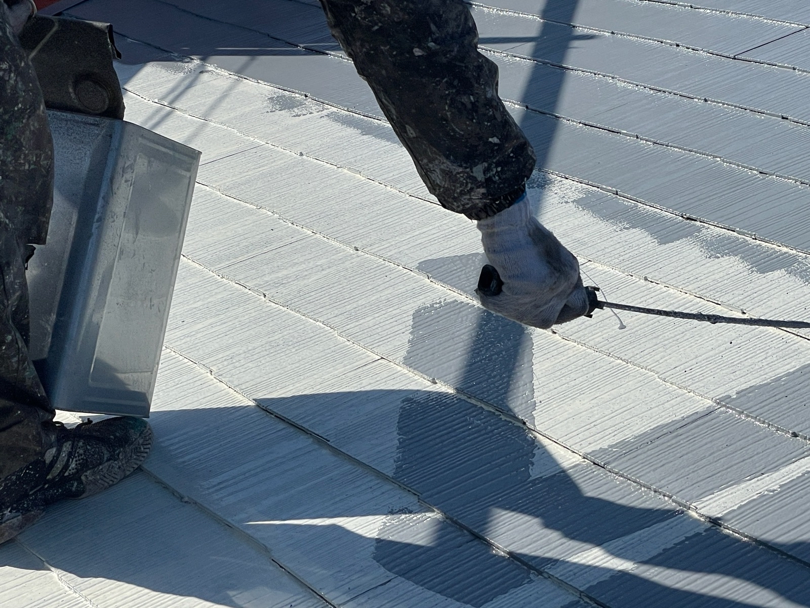 本日は、屋根塗装下塗り2回目、中間検査、養生等の施工をさせて頂いております。