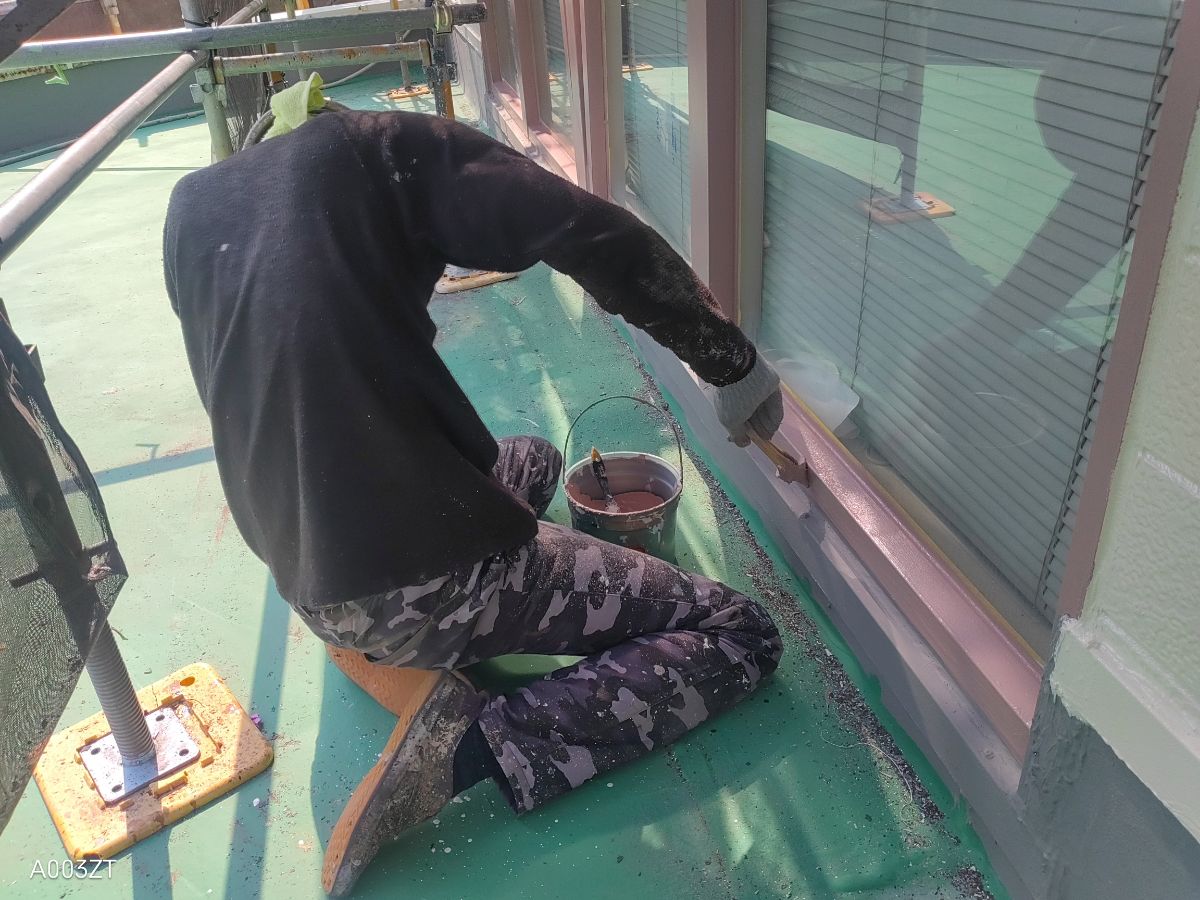 大きいサッシですので、一苦労ですが丁寧に塗装して頂いておりました!