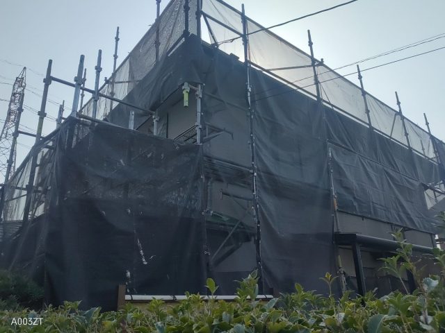 本日は、屋根下塗り、外壁下塗り、軒天塗装をさせて頂いております。