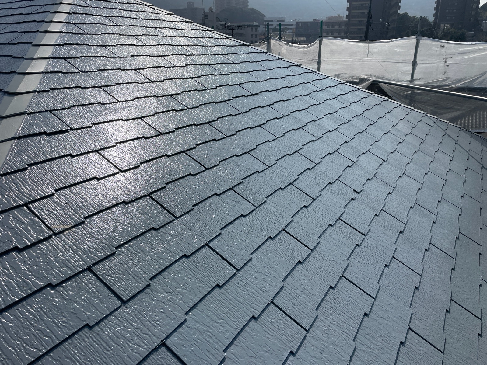 本日は、中間検査、付帯部の塗装と屋根の上塗り1回目(途中)をさせて頂いております。