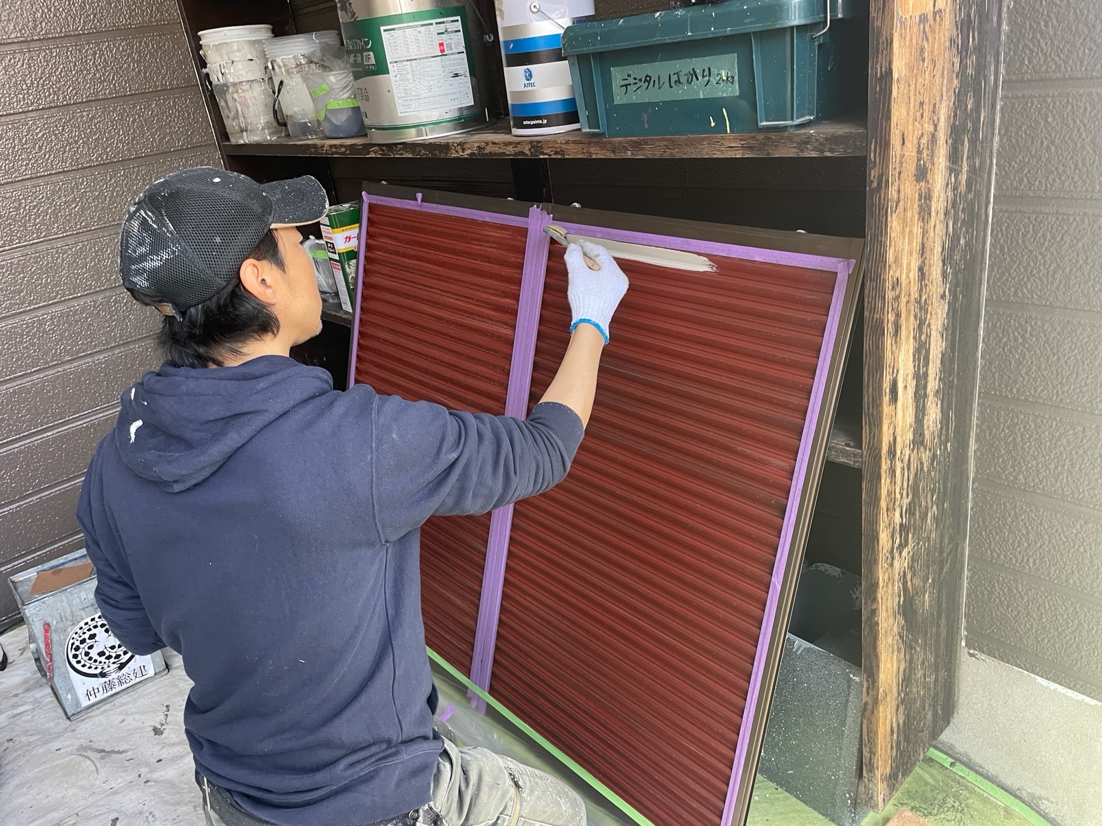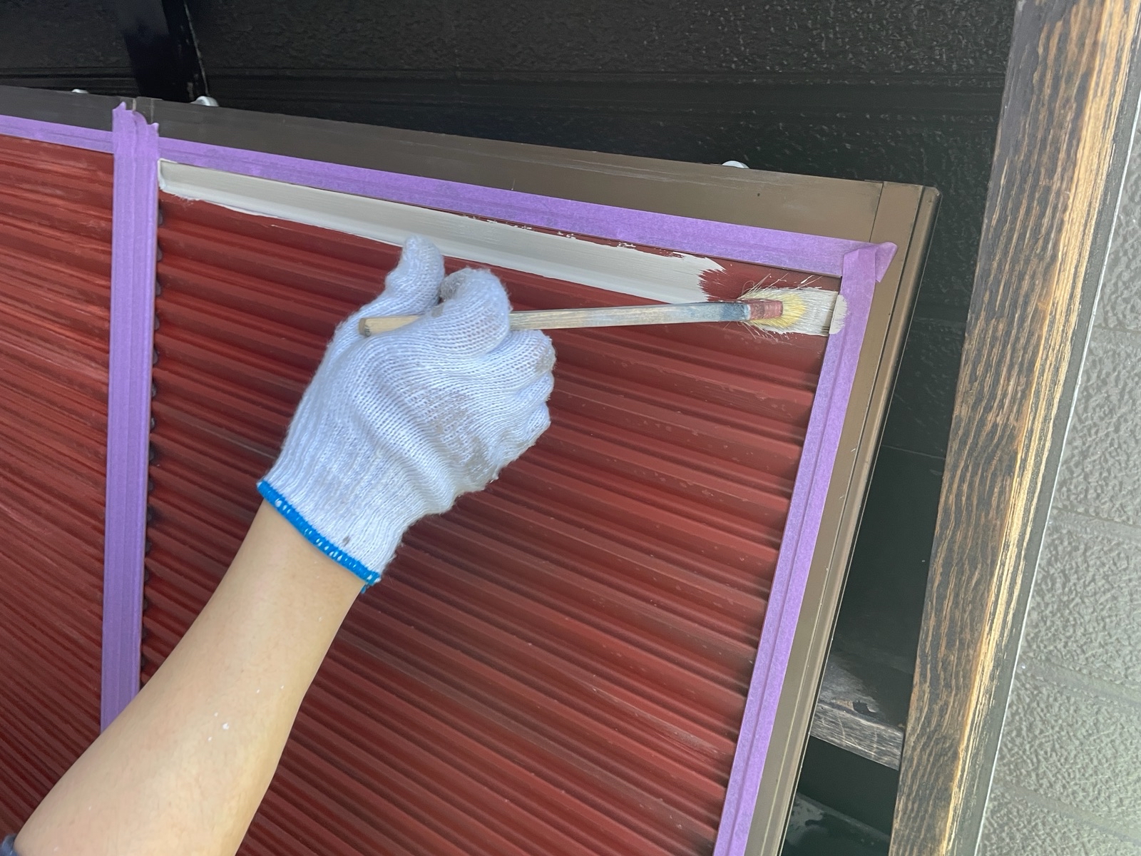 本日は、雨戸や付帯部の塗装をさせて頂いております。