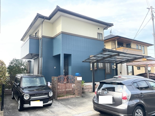 本日、行橋市西泉にてセメント瓦屋根及びサイディング外壁塗装から3年後の定期点検にお伺いしました。