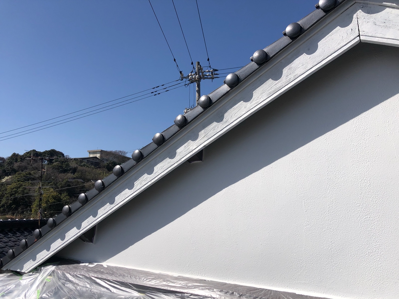 今回の破風は木でできておりますが、前回の塗装の際に膜を張る塗装を行っておりますので