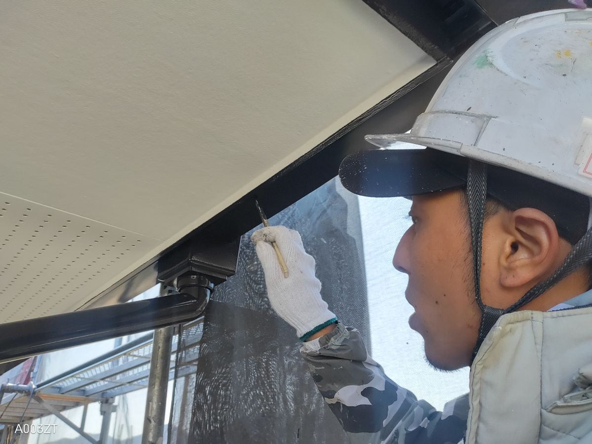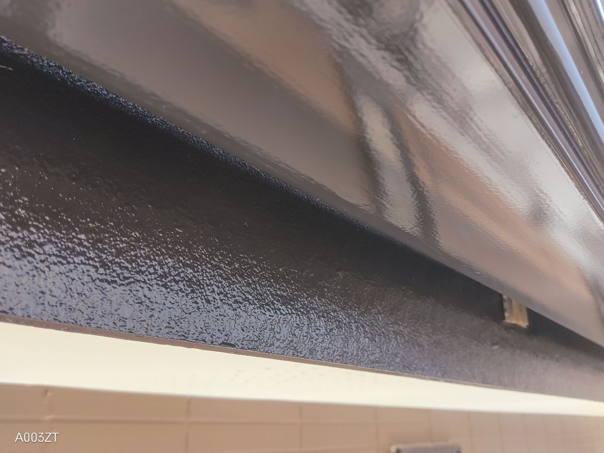 本日は、下屋根中間検査、下屋根上塗り1回目、付帯塗装、ベランダ床プライマーをさせて頂いております。