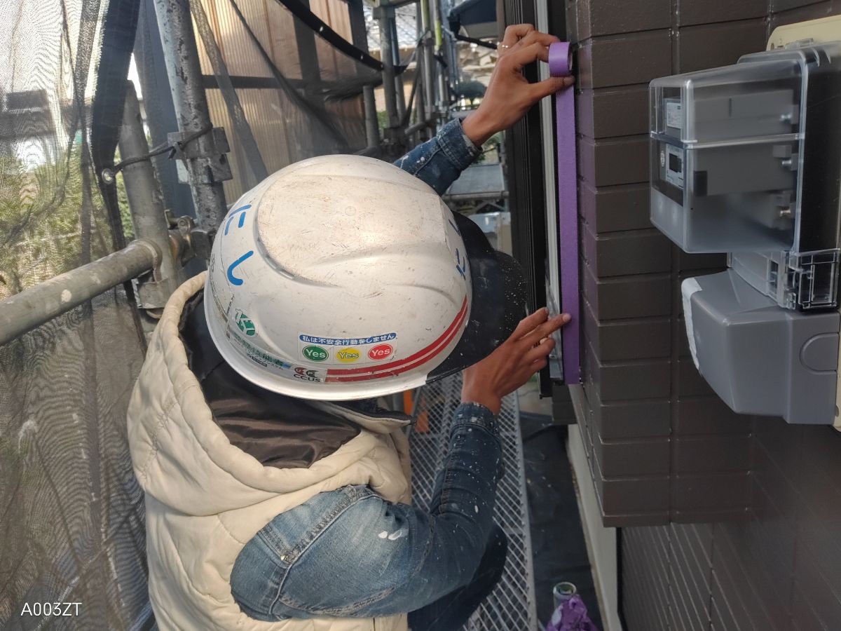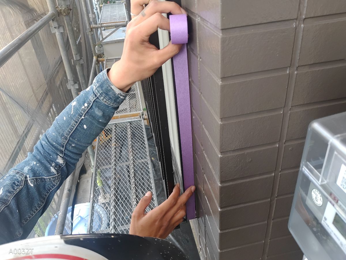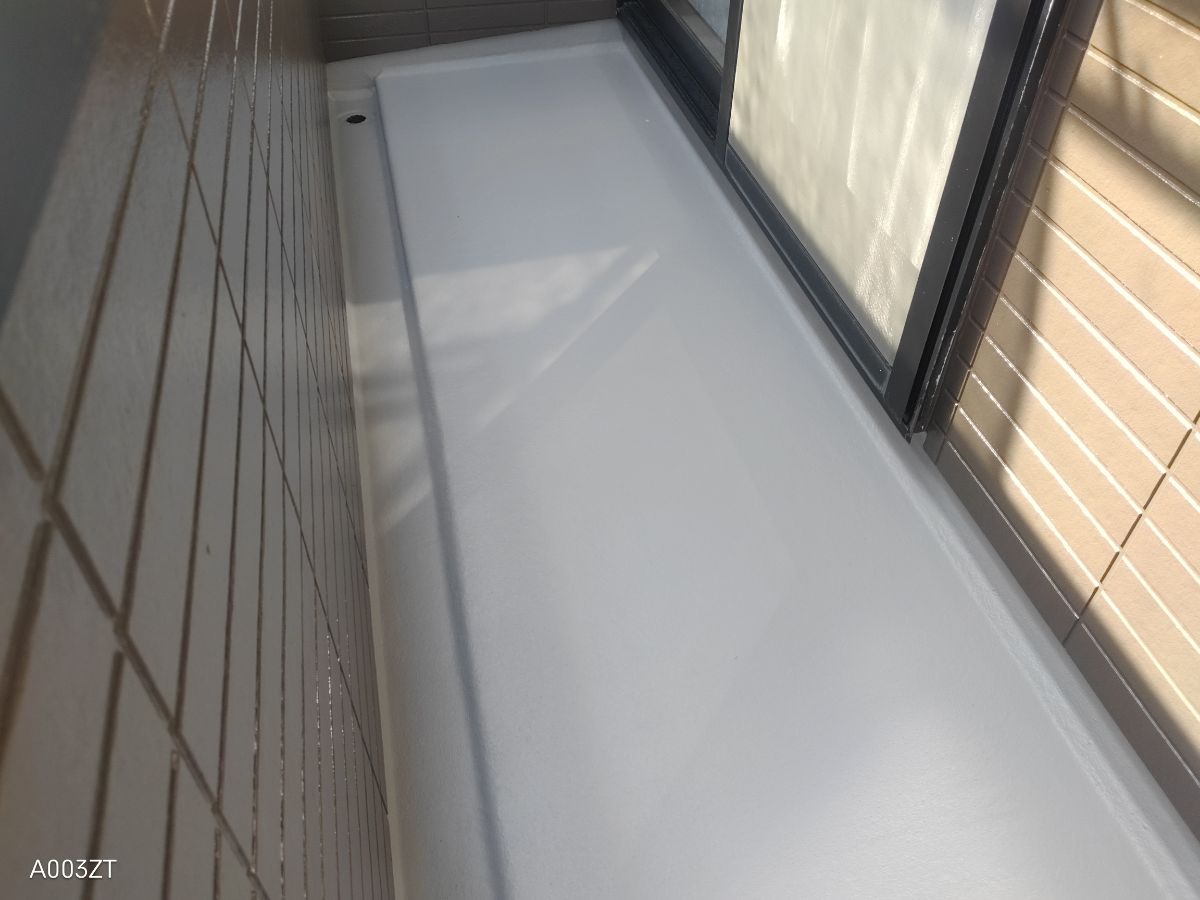 本日は、下屋根上塗り2回目、付帯塗装、ベランダ床トップをさせて頂いております。