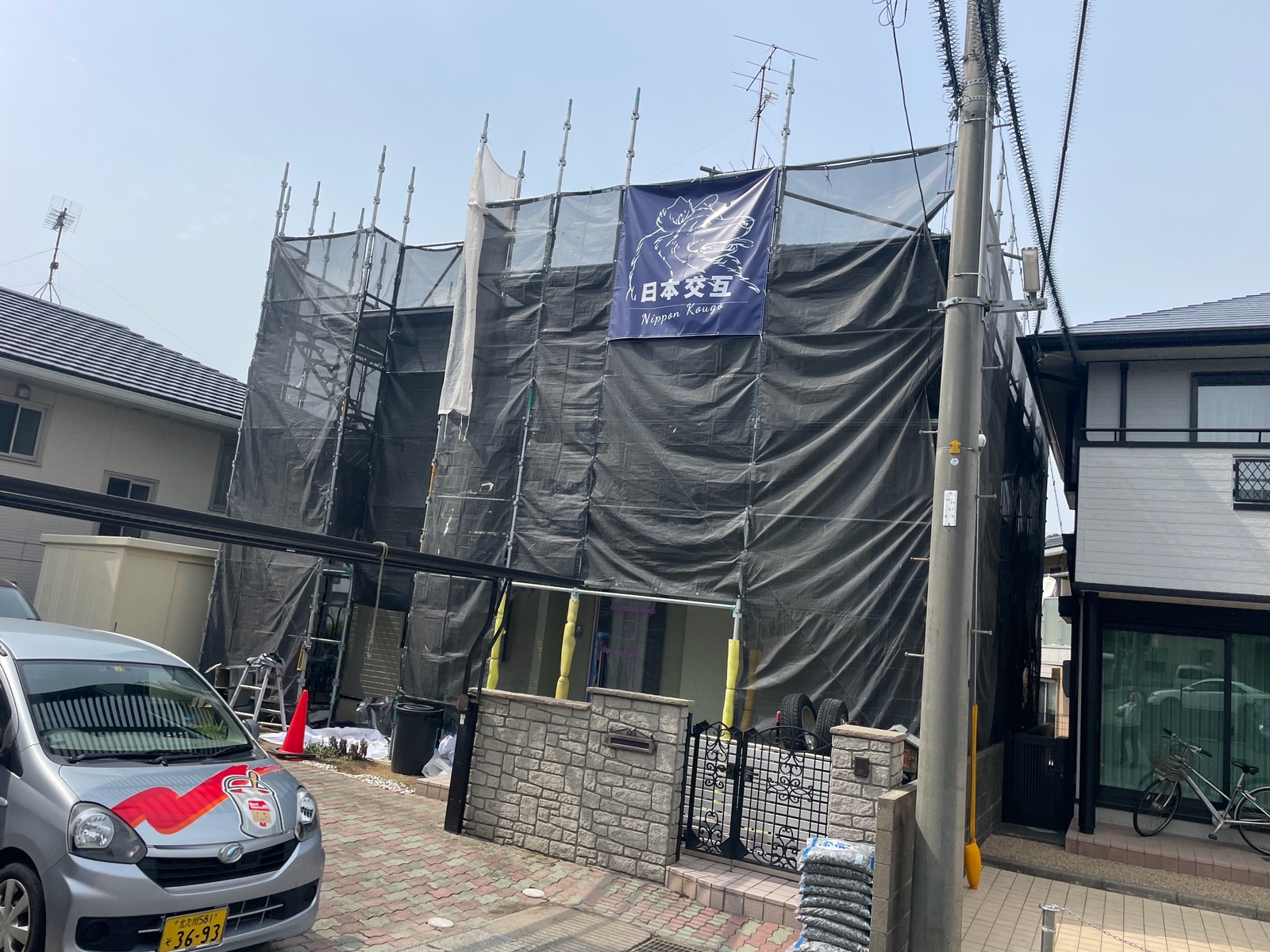 付帯部の塗装と外壁のライン出しをさせて頂いております!