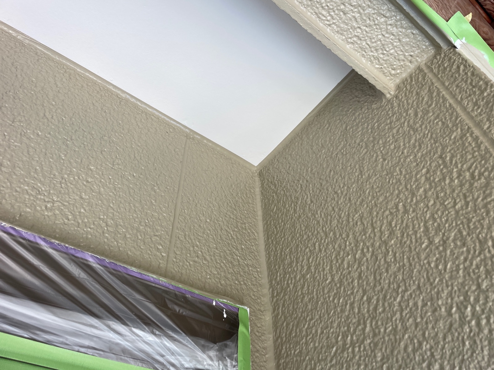 本日は、外壁の上塗り1回目、付帯部塗装をさせて頂いております。