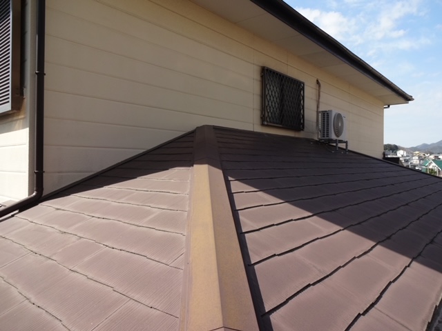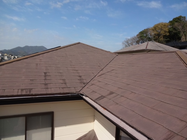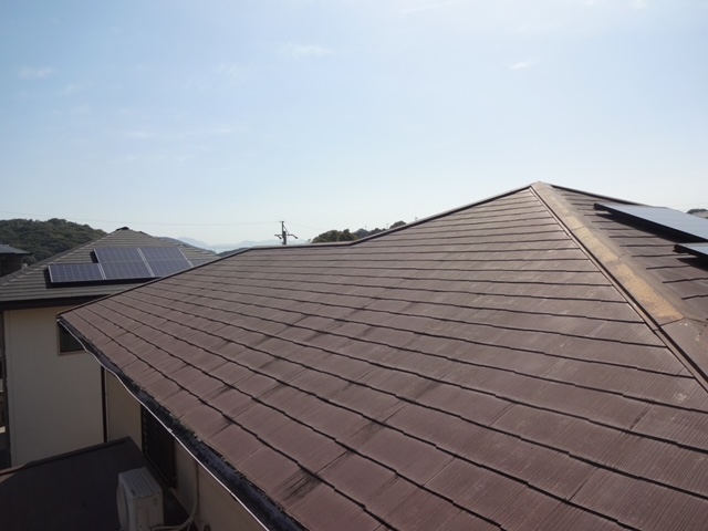 本日、遠賀郡岡垣町にてコロニアル屋根及びサイディング外壁塗装から12年後の定期点検にお伺いしました。