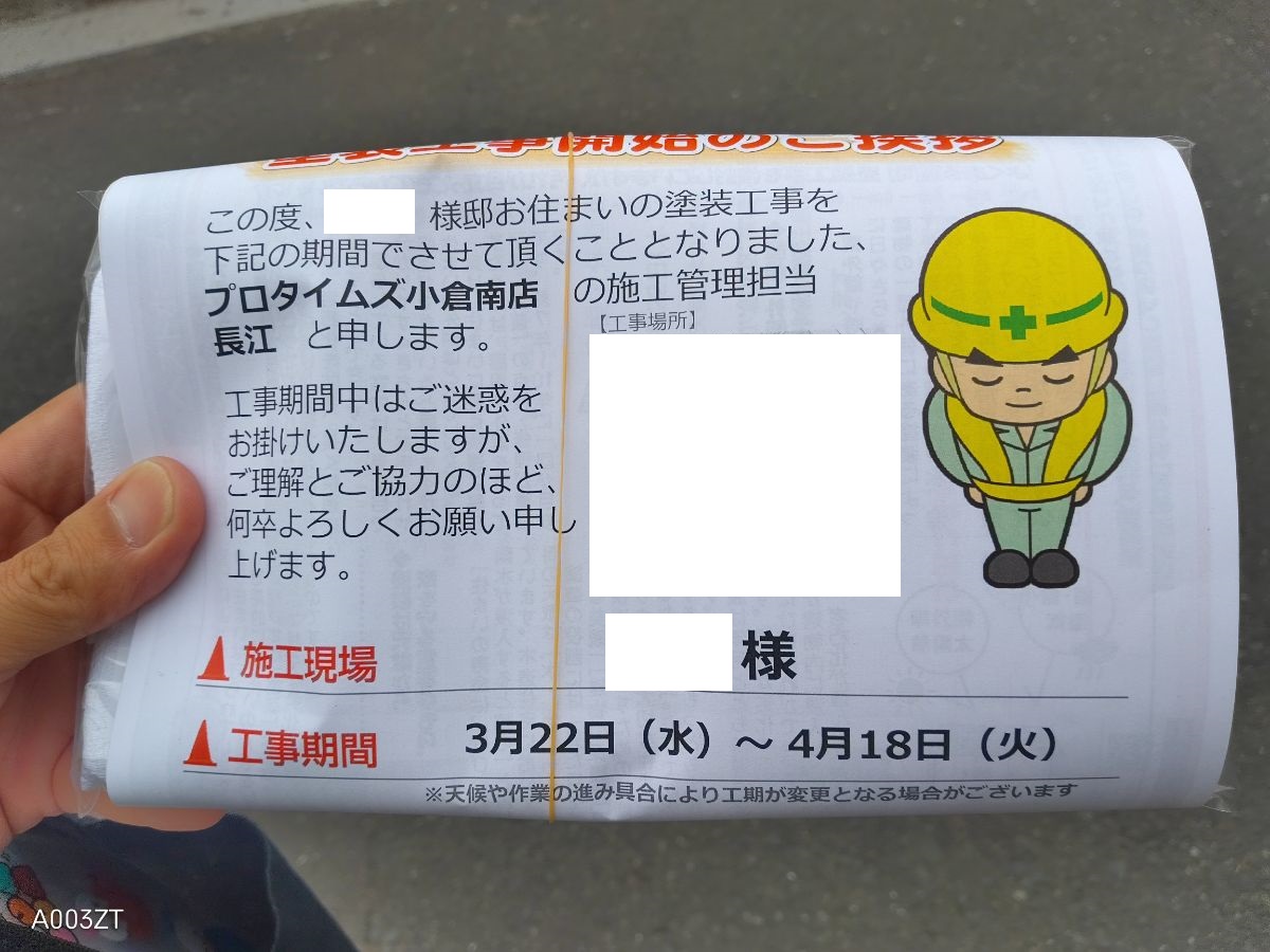 本日は、ご近隣の方々にご挨拶をさせて頂いております。