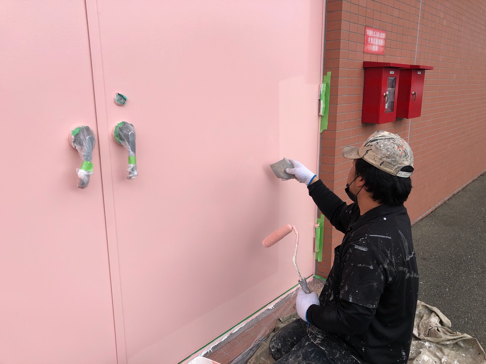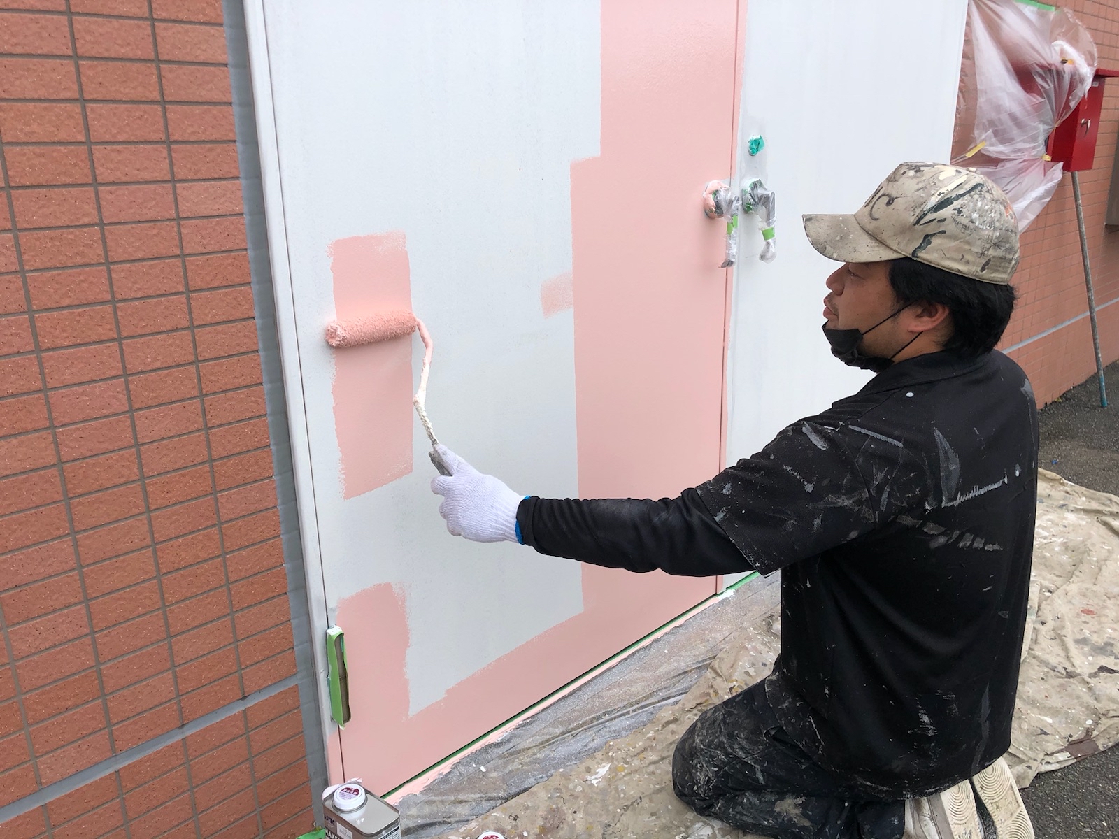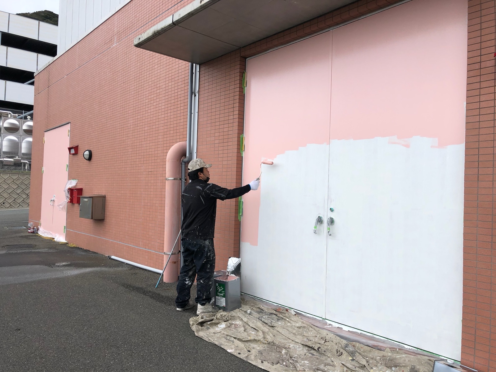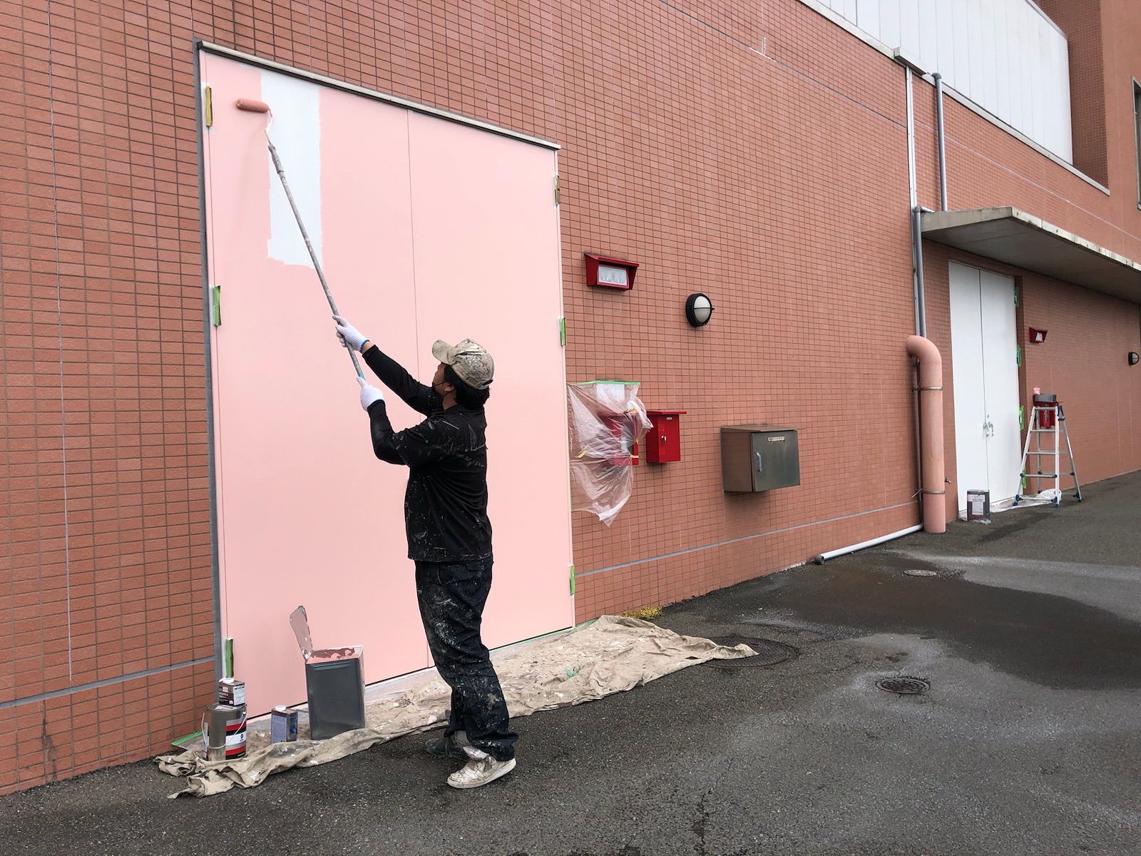 本日は外側の鉄扉の塗装をさせて頂いております!