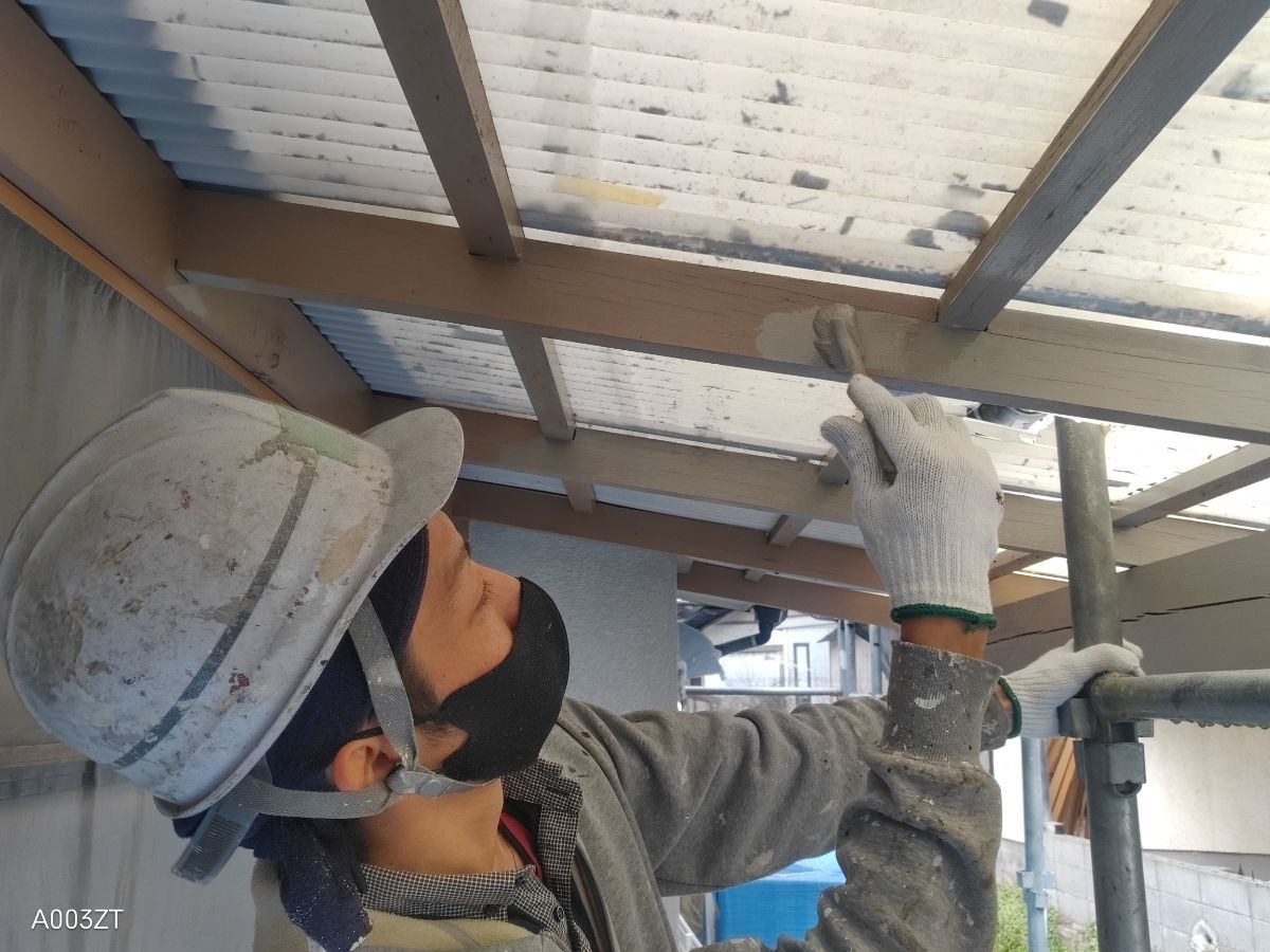 テラス屋根は張替え予定ですので、養生無しで塗装を進めております!