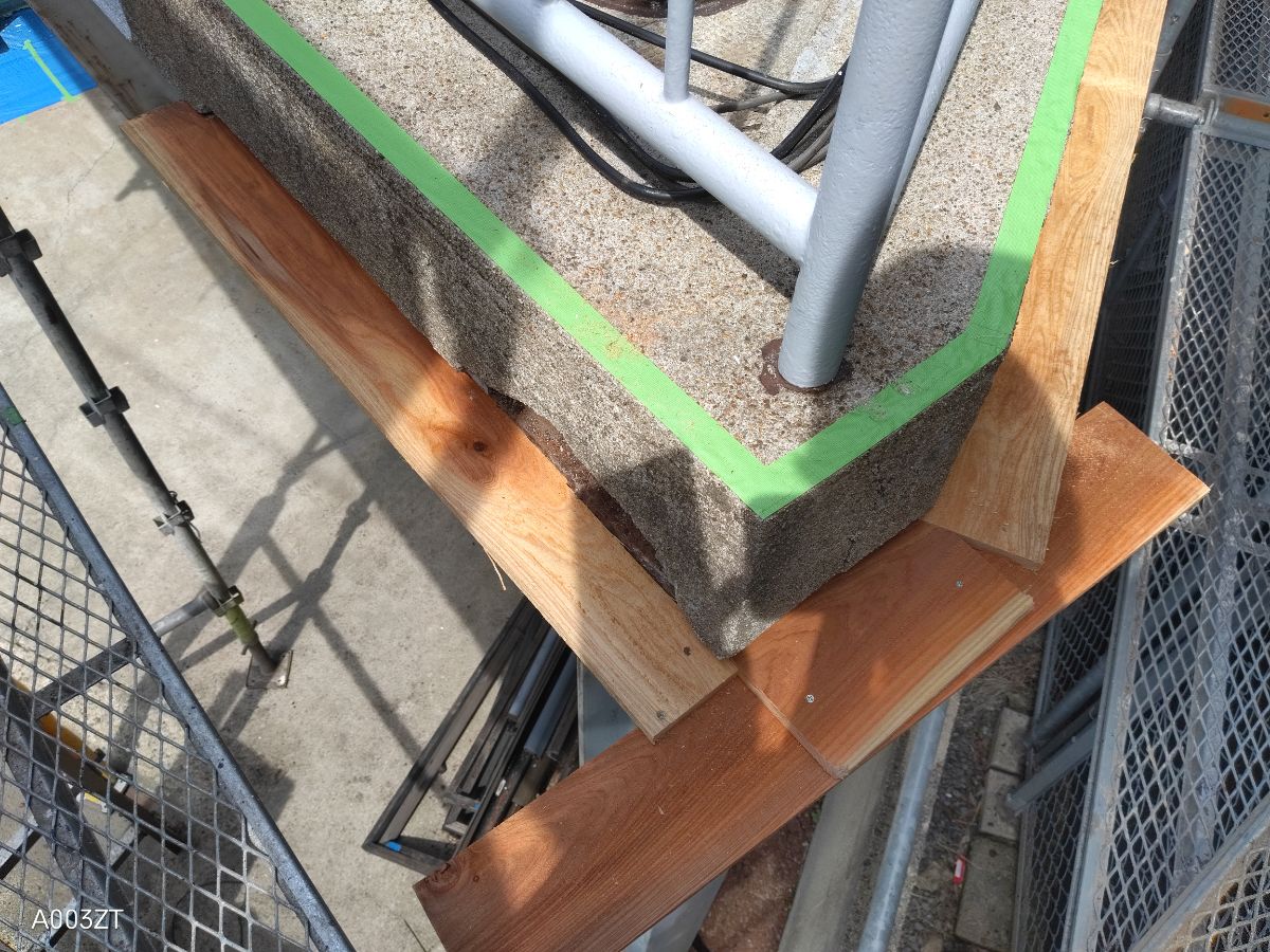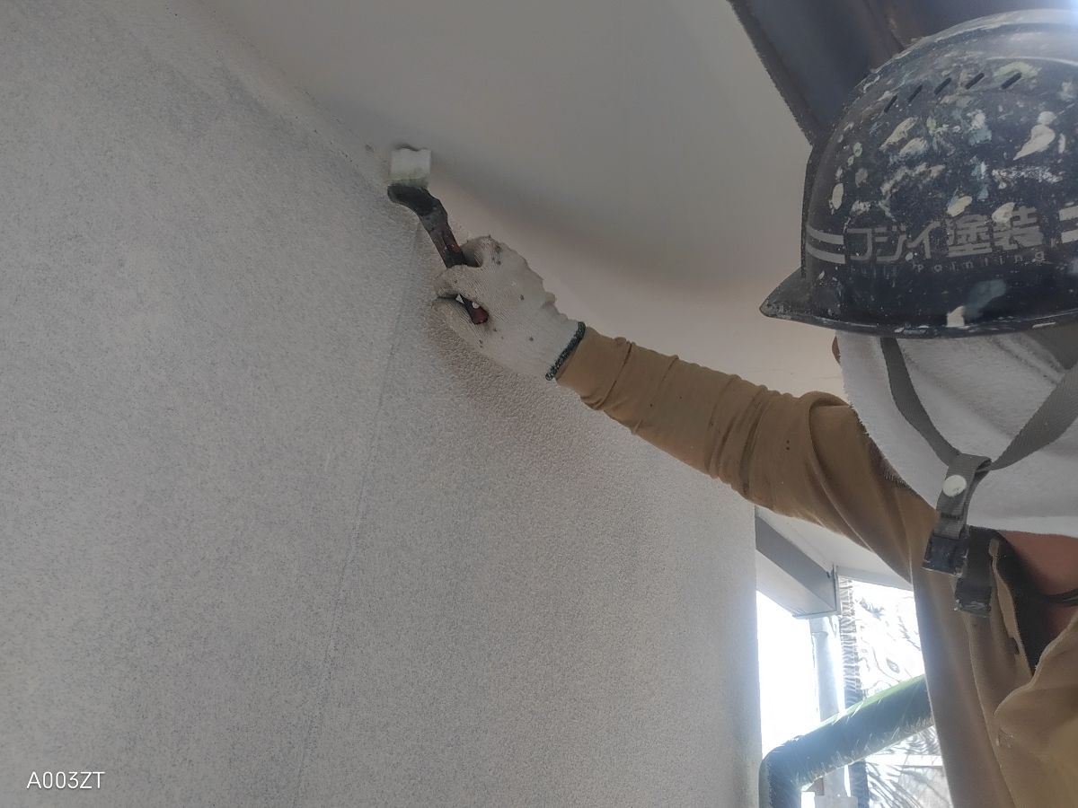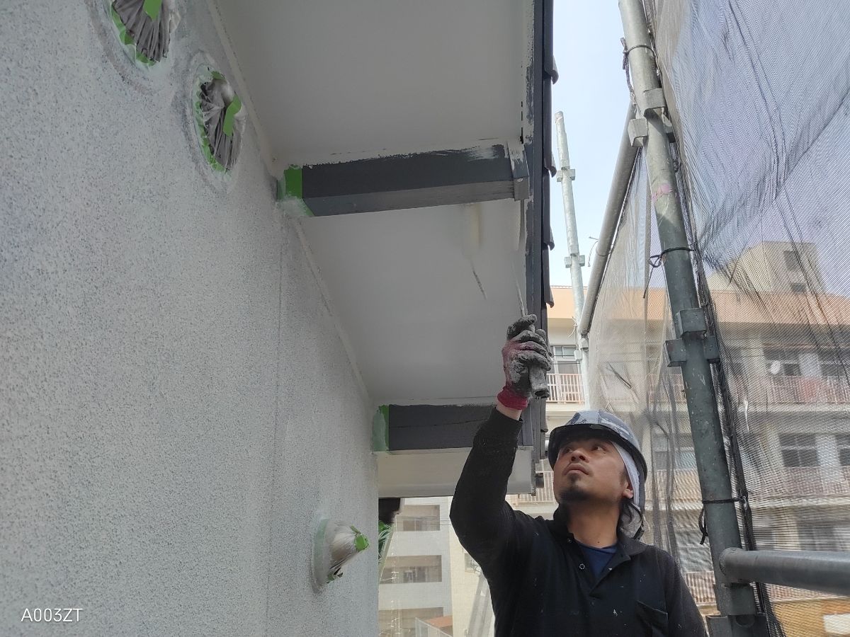 本日は、軒天塗装、鉄部錆止め、モルタル補修部添え木設置をさせて頂いております。