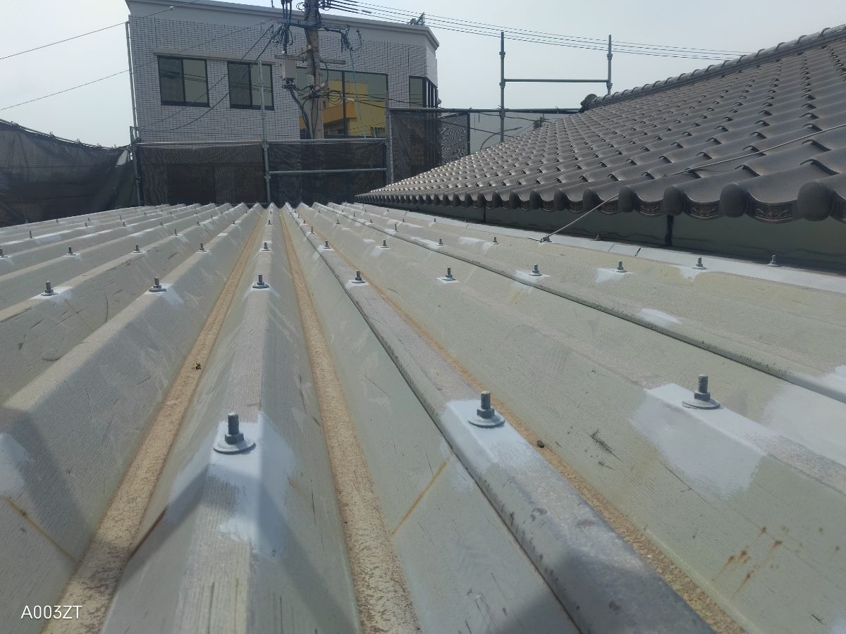今回、折板屋根は錆止め効果のある上塗を使用しますが、