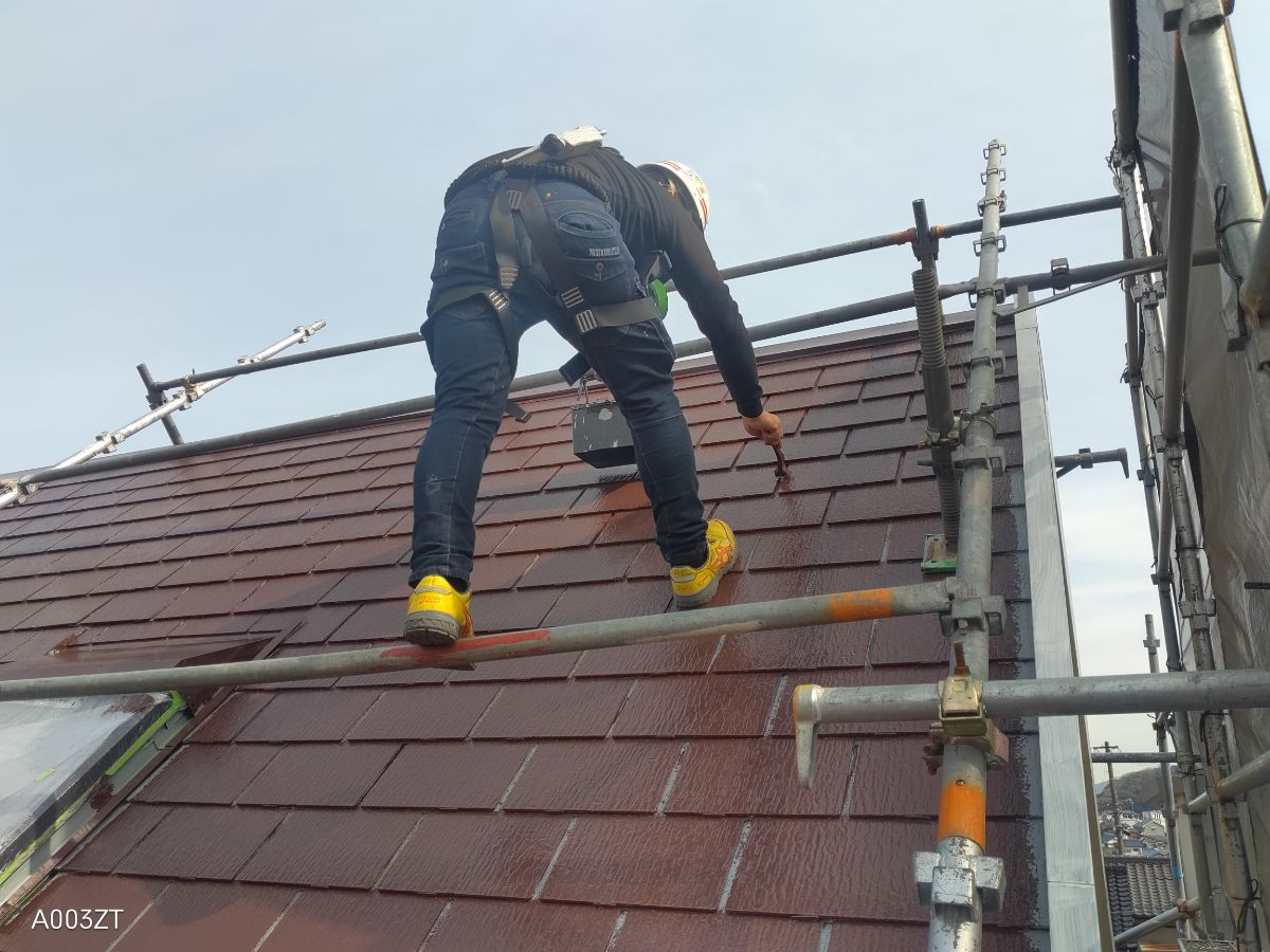 本日は、屋根上塗り2回目、付帯部塗装をさせて頂いております。