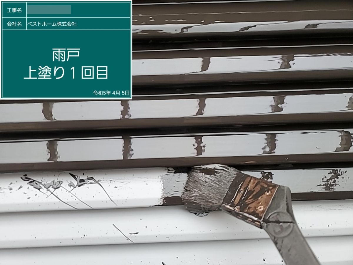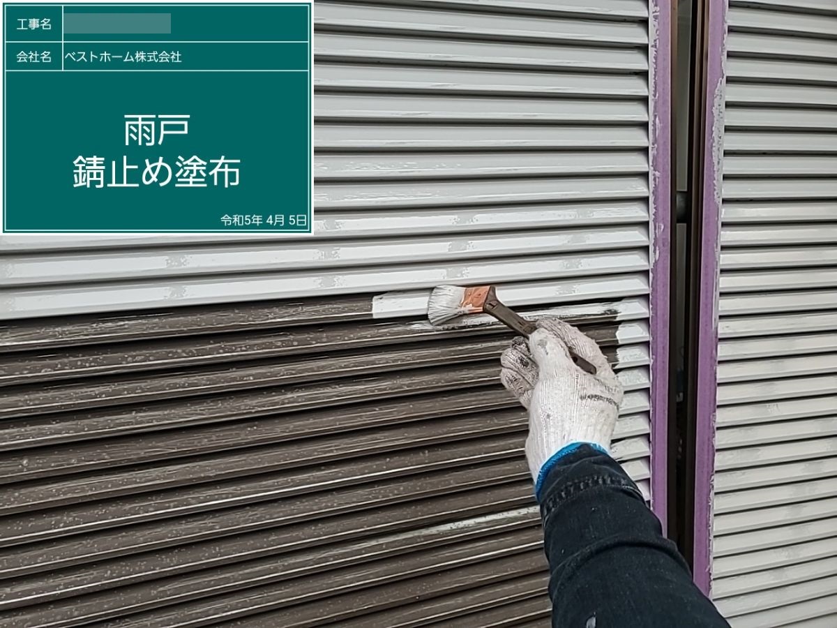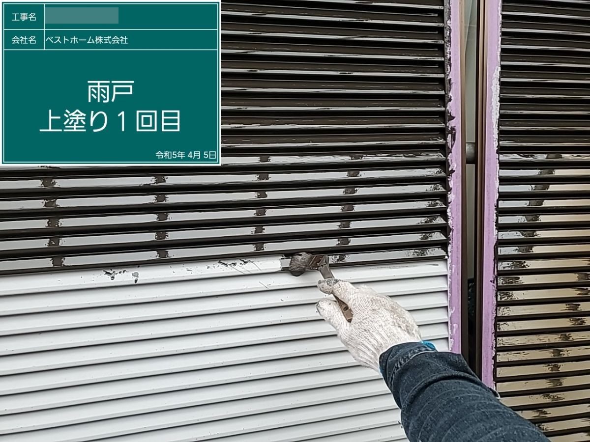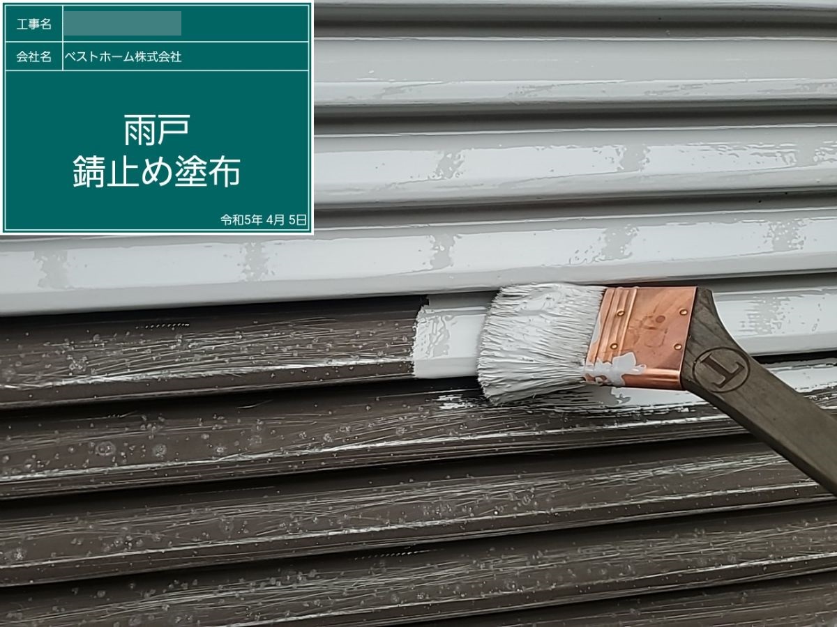 ●●外壁塗装 雨戸錆止め・上塗り1回目