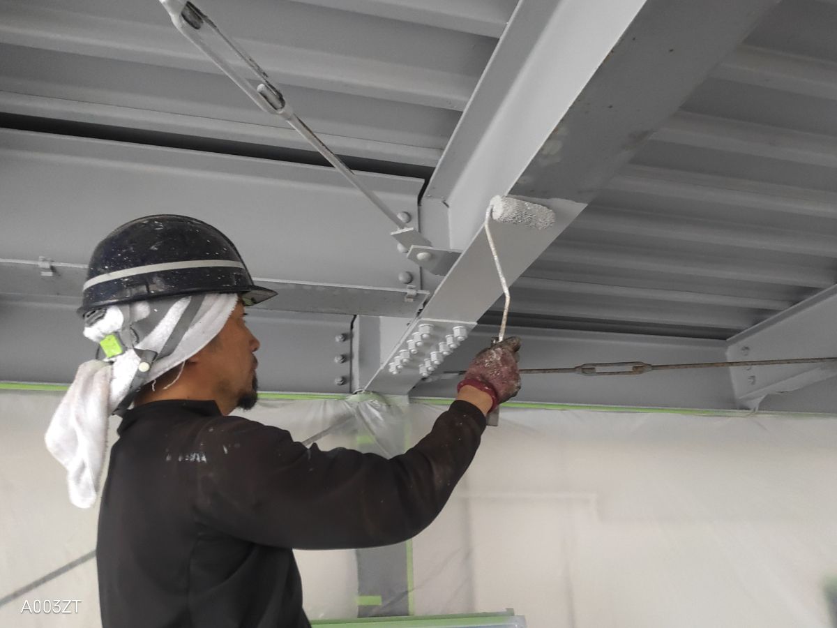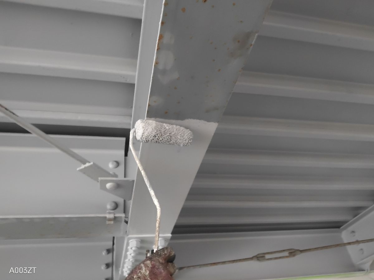 本日は、鉄骨部塗装、雨戸塗装をさせて頂いております。