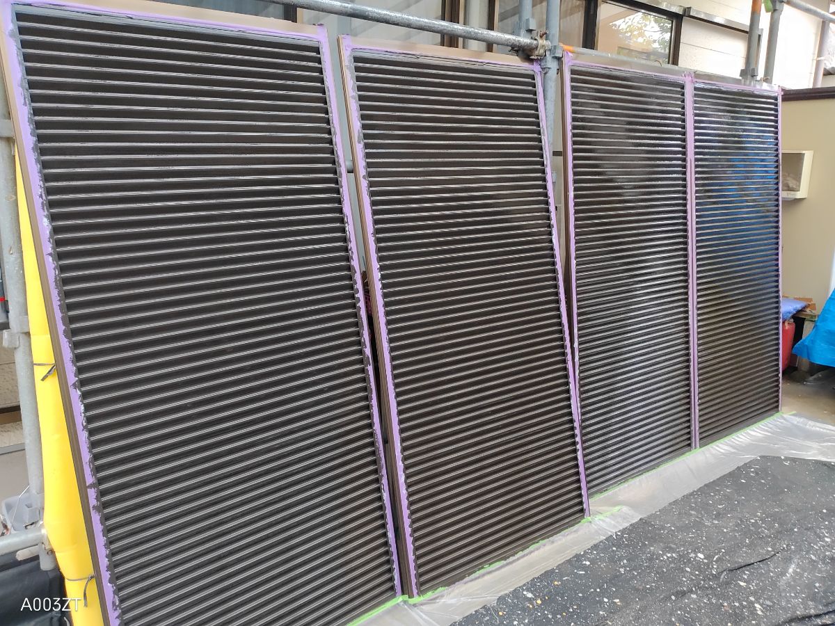朝は雨天でしたが、屋根のある駐車場でしたので、雨戸の塗装をさせて頂いております!