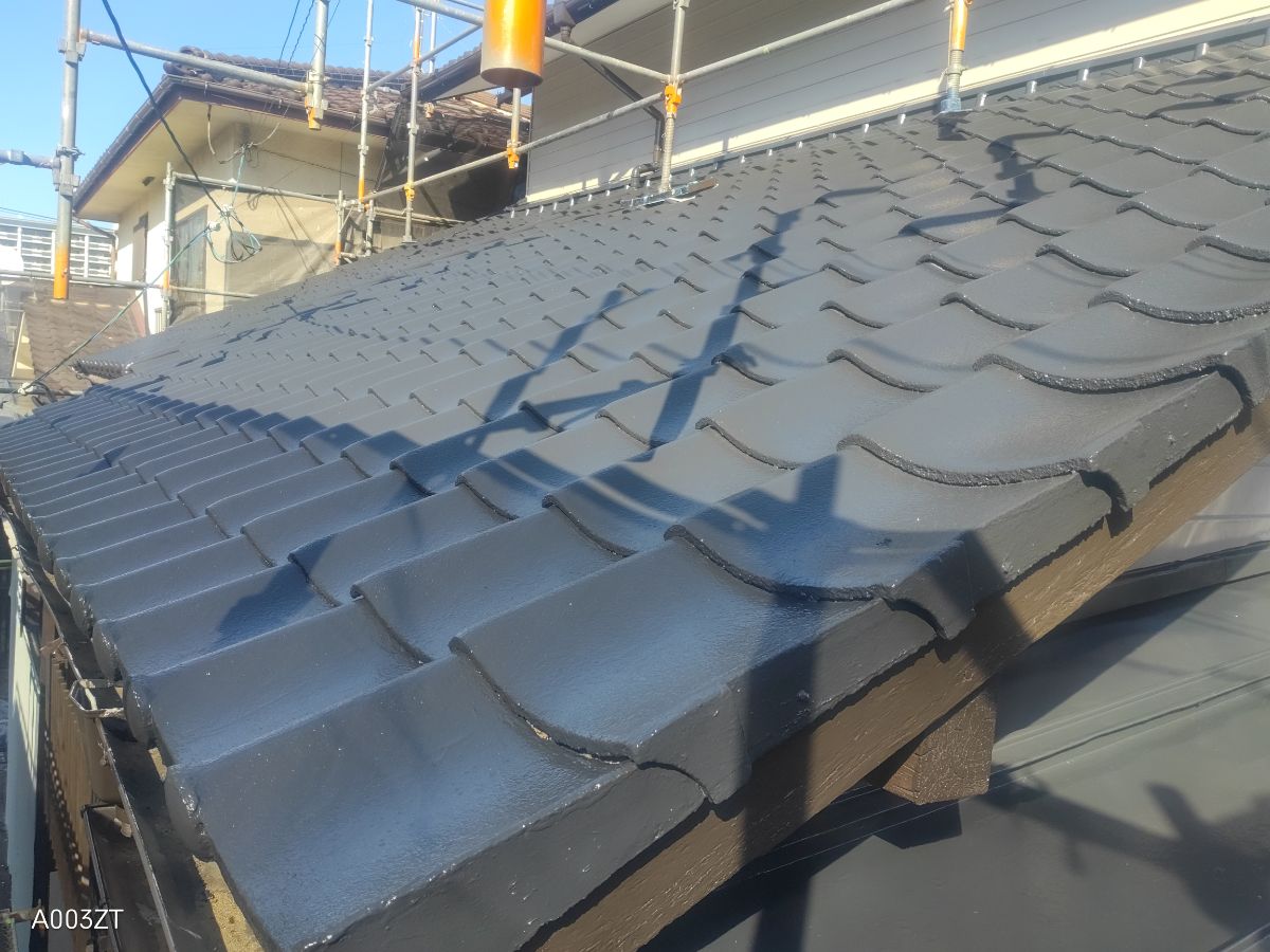 本日は、屋根上塗り2回目、手直し・清掃、足場解体前検査をさせて頂いております。