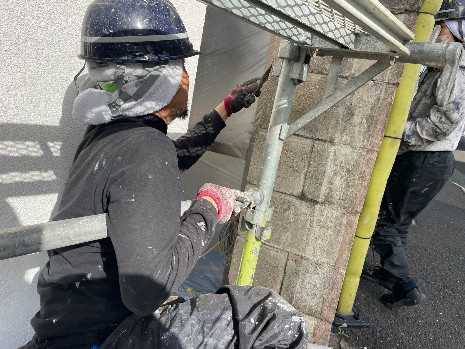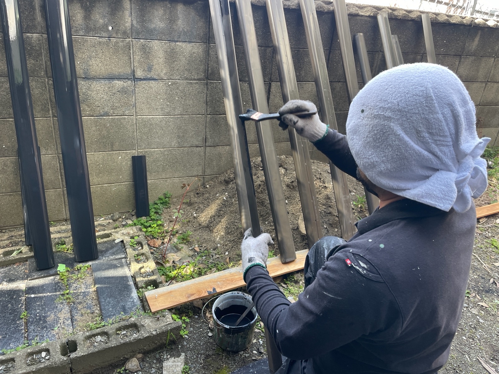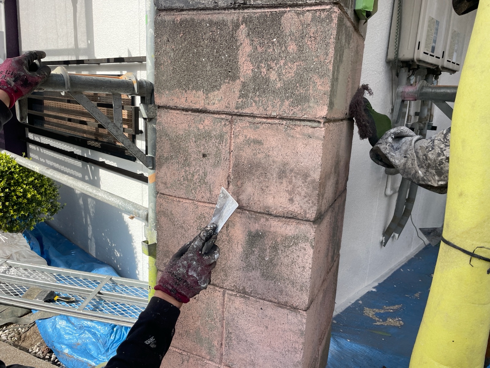 塀にはケレンを行い表面を整えてから塗装を行ってまいります!