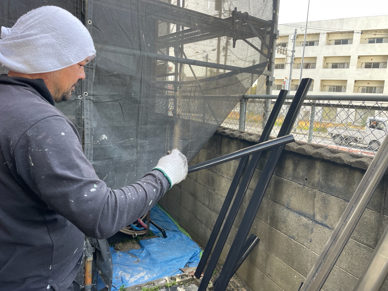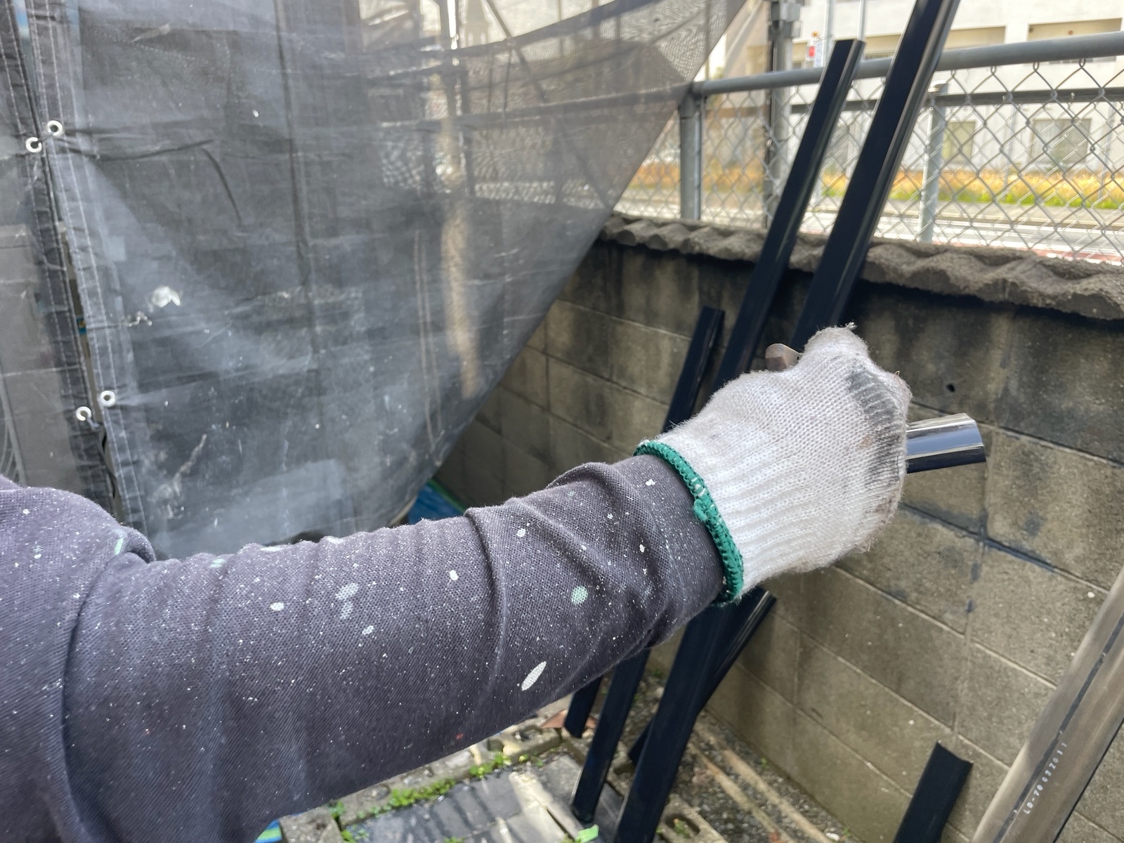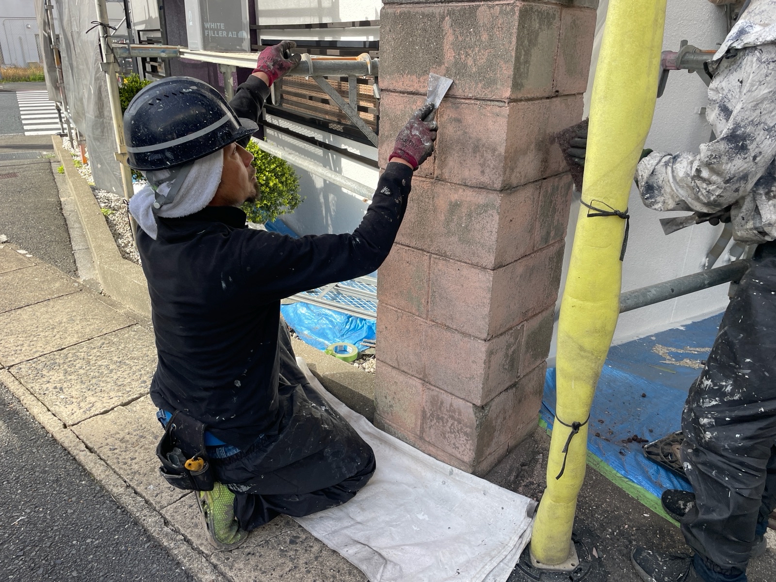 塀にはケレンを行い表面を整えてから塗装を行ってまいります!