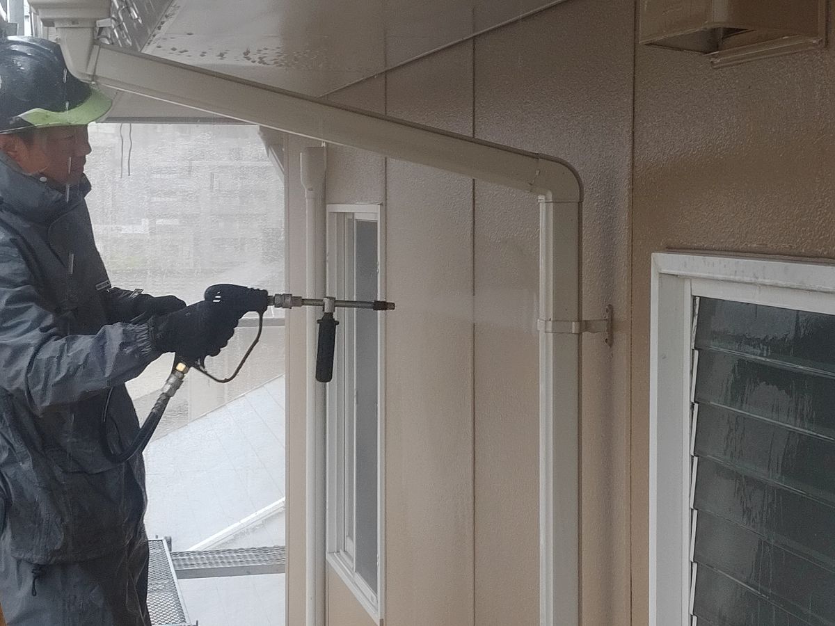 塗装工事で唯一、雨天でもできるのが高圧洗浄です!