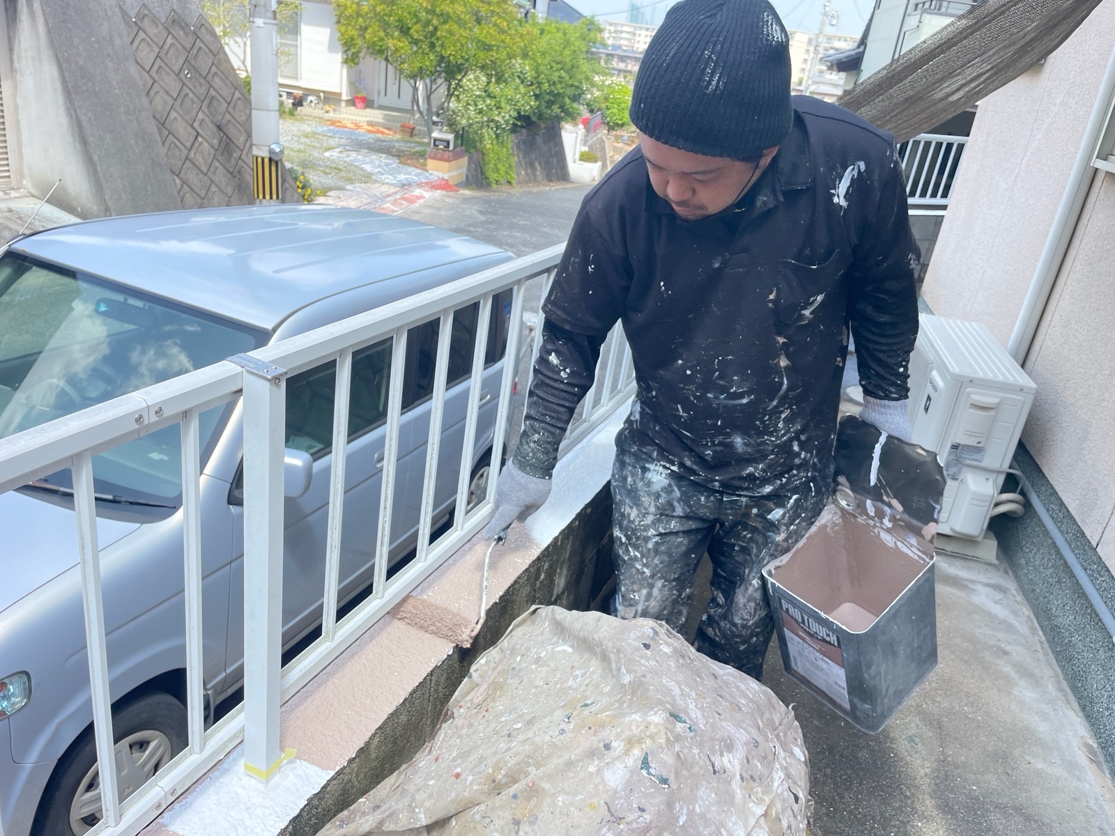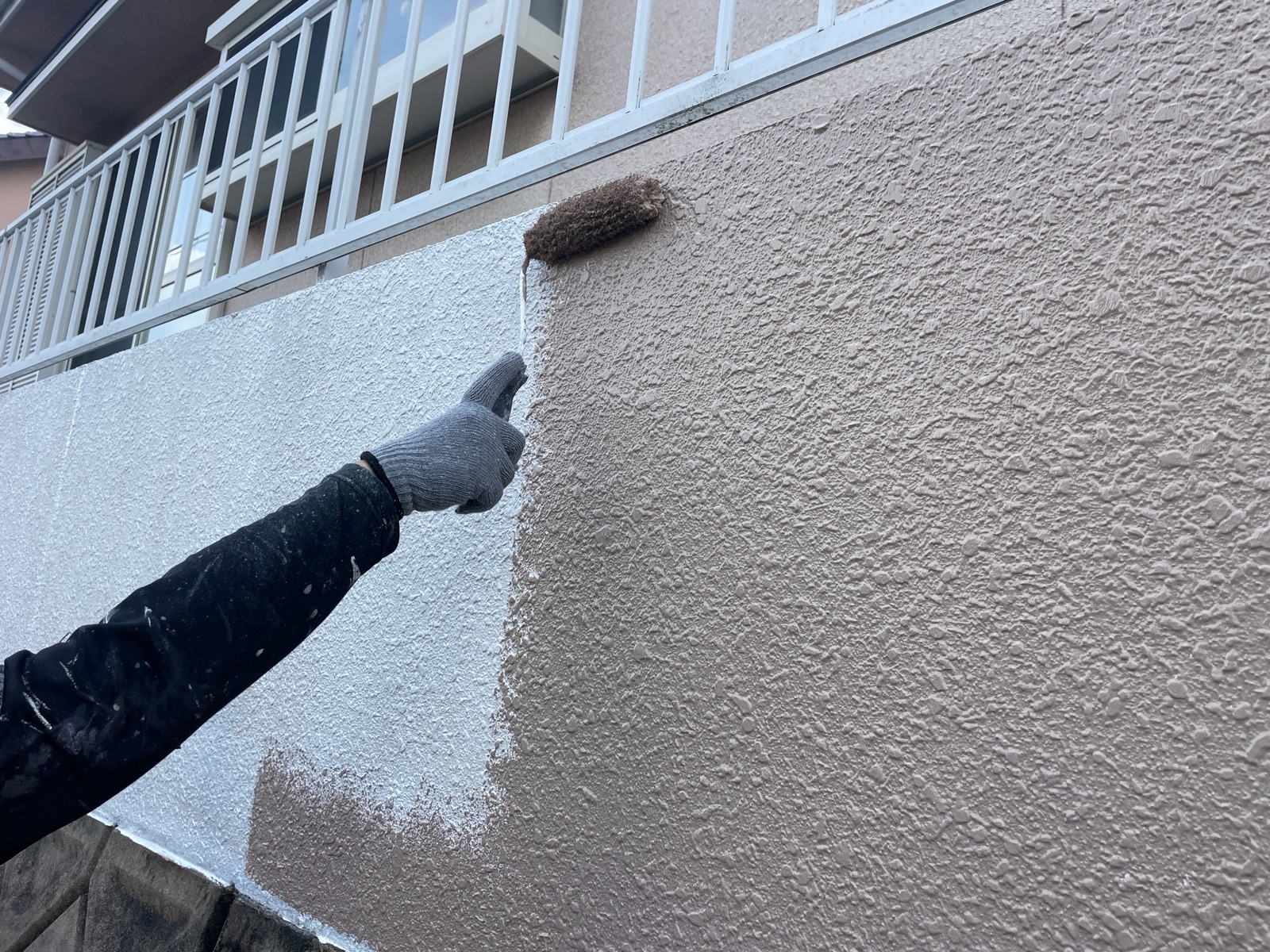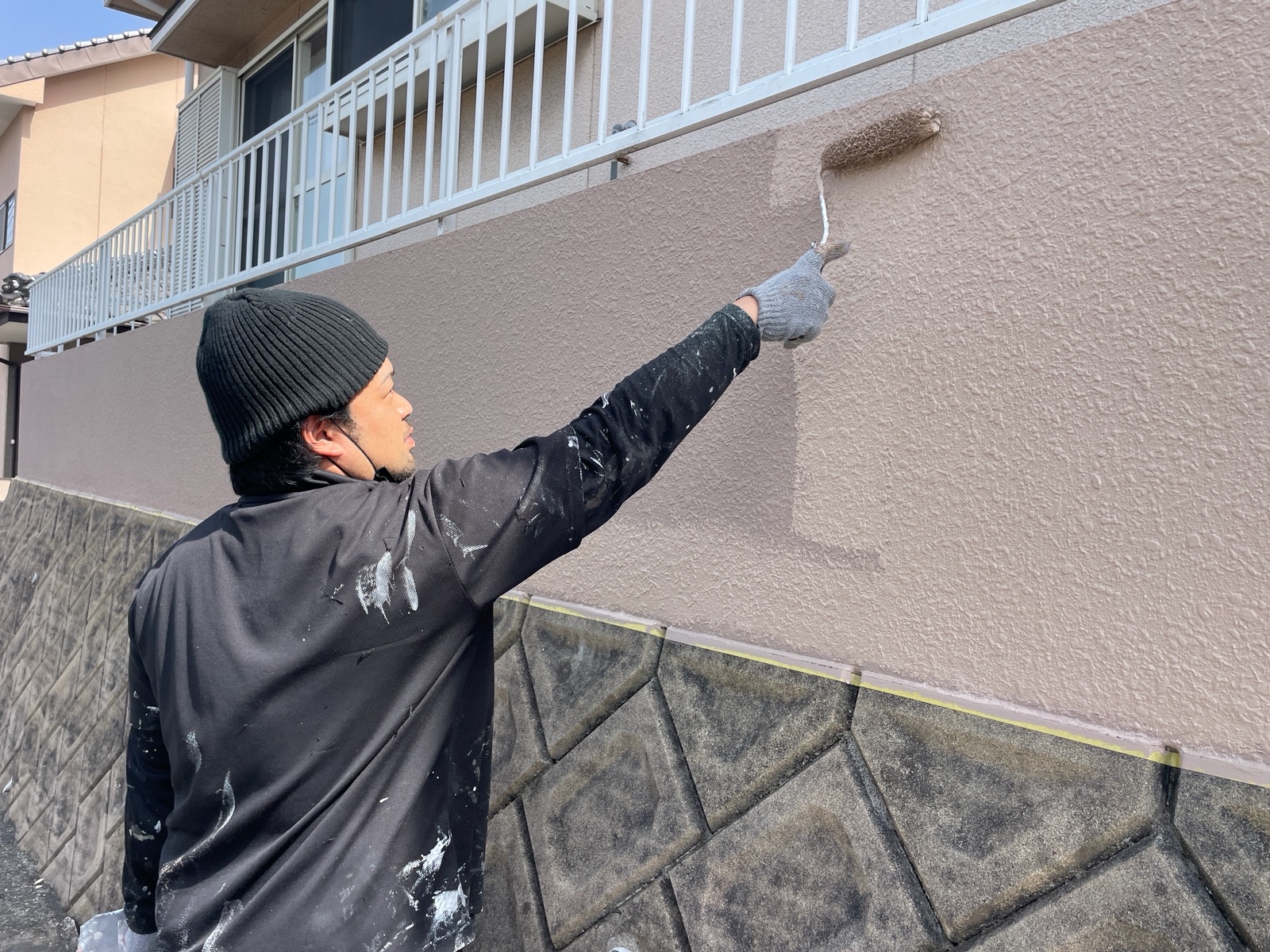 本日は、塀の中塗り、上塗りをさせて頂いております。
