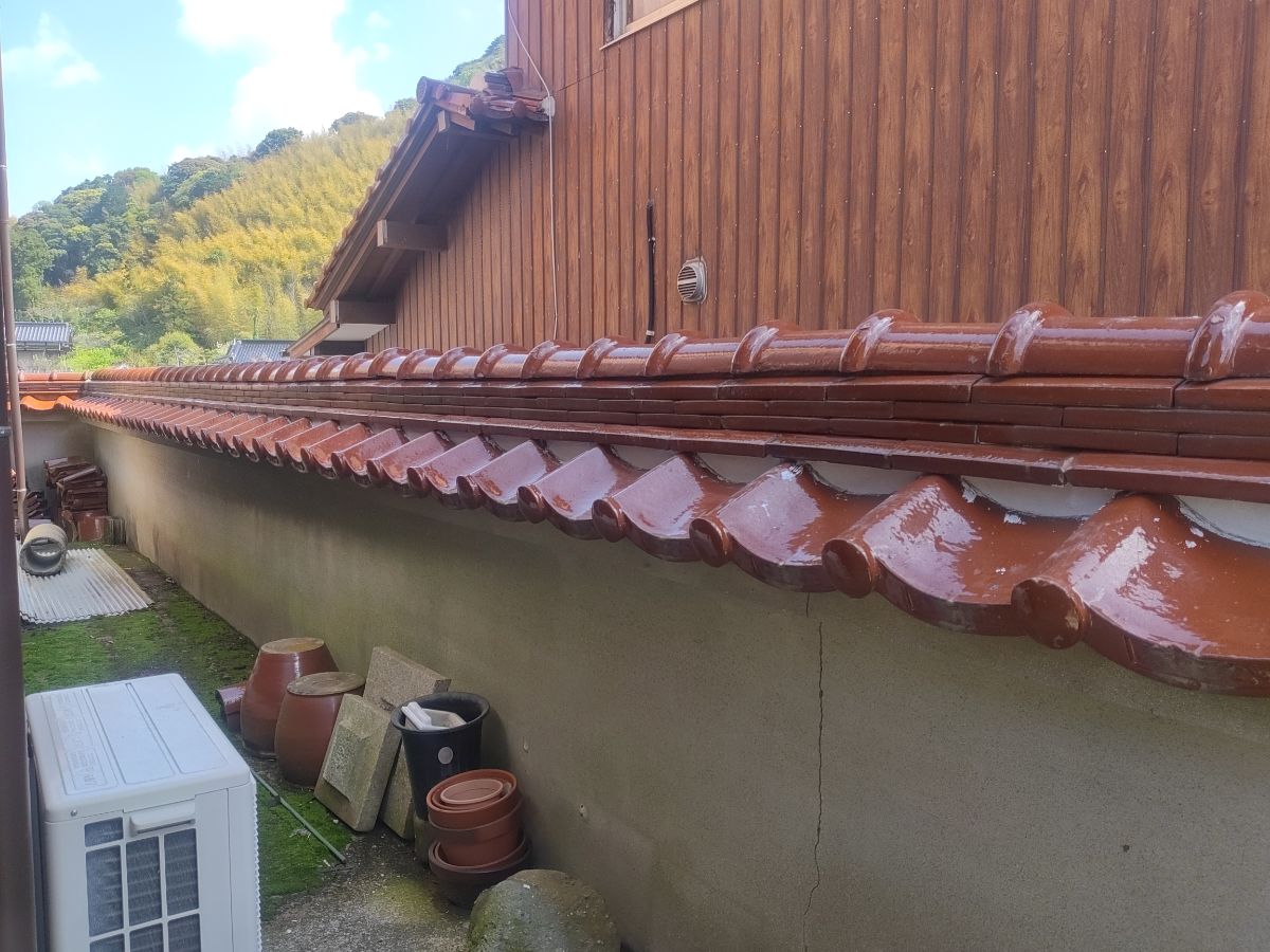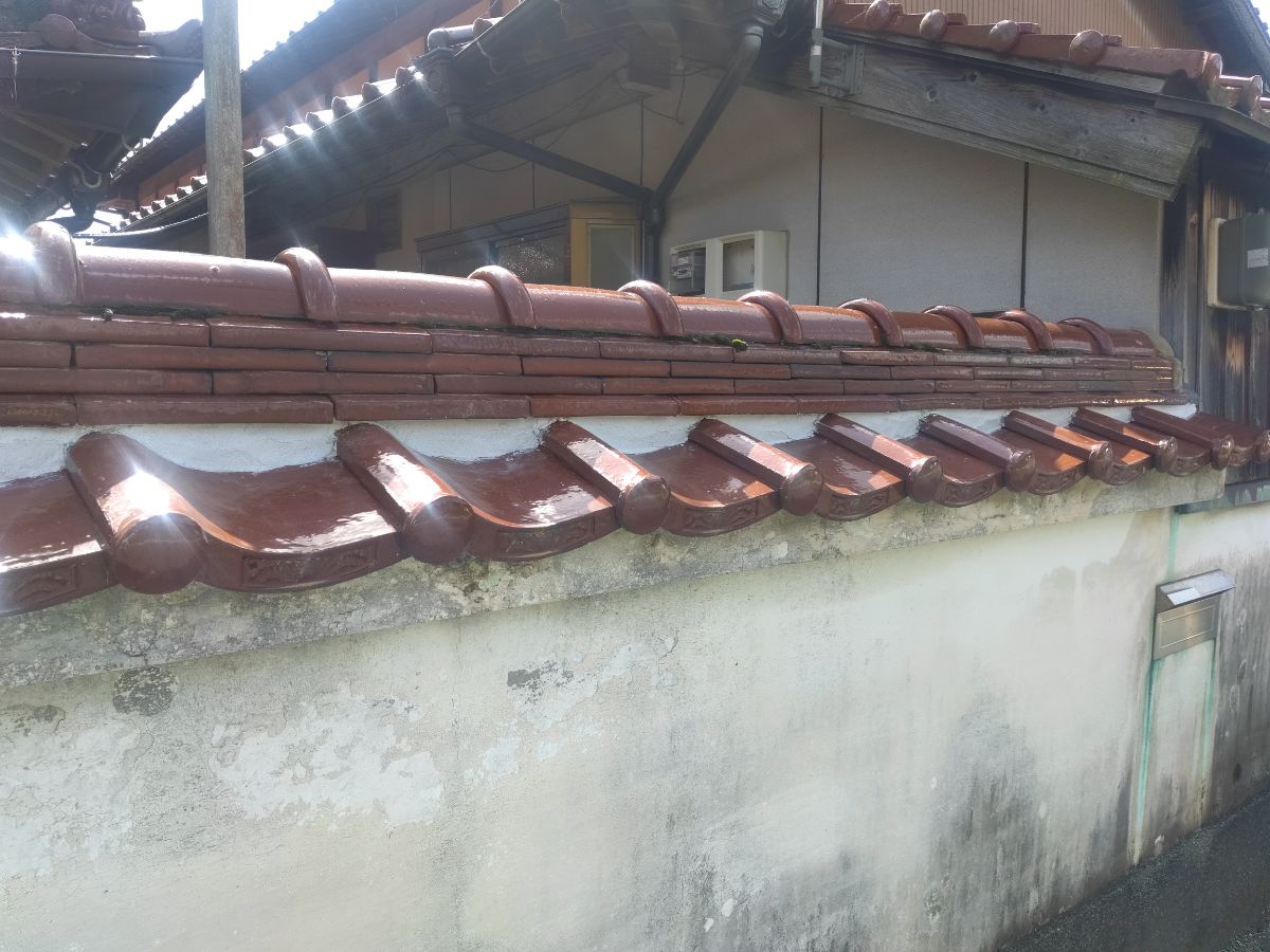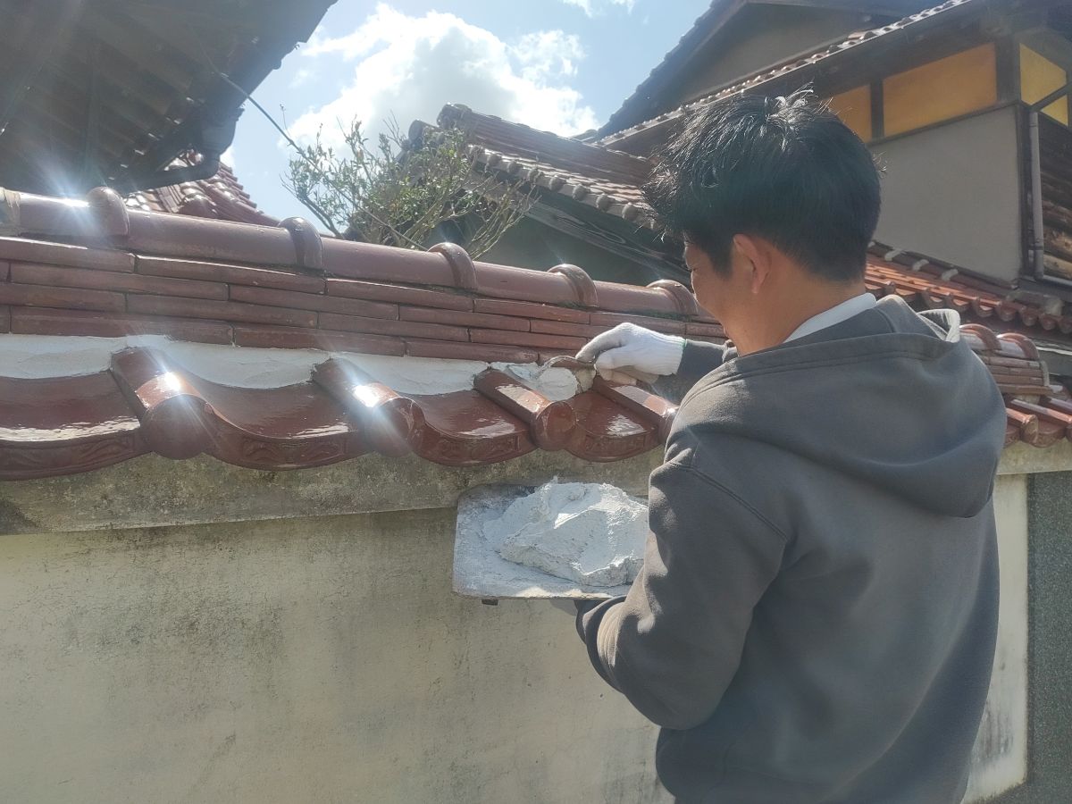 塀の瓦部分の漆喰上塗り工事を行っております!
