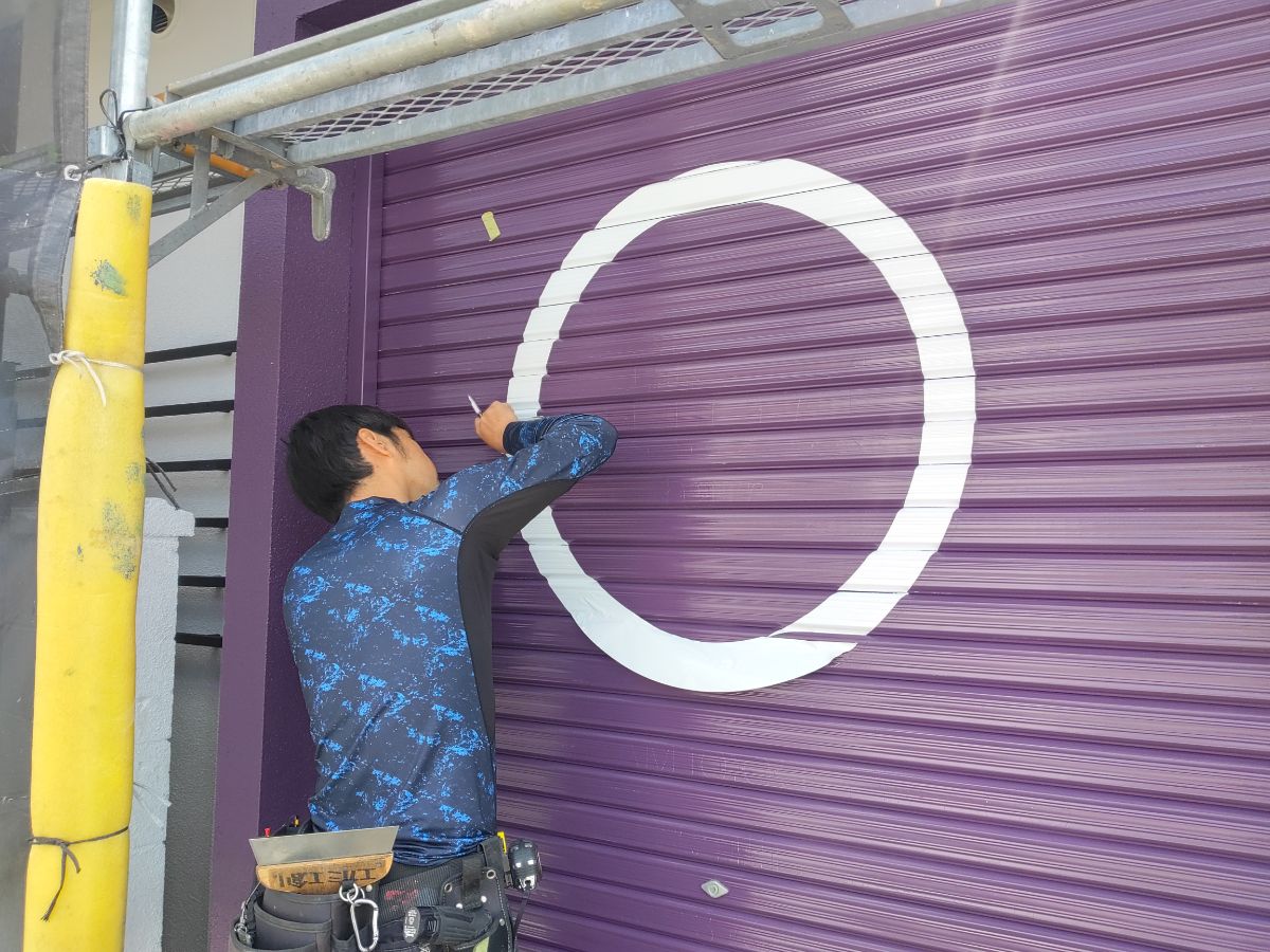 ●●外壁塗装 シャッター文字貼付け