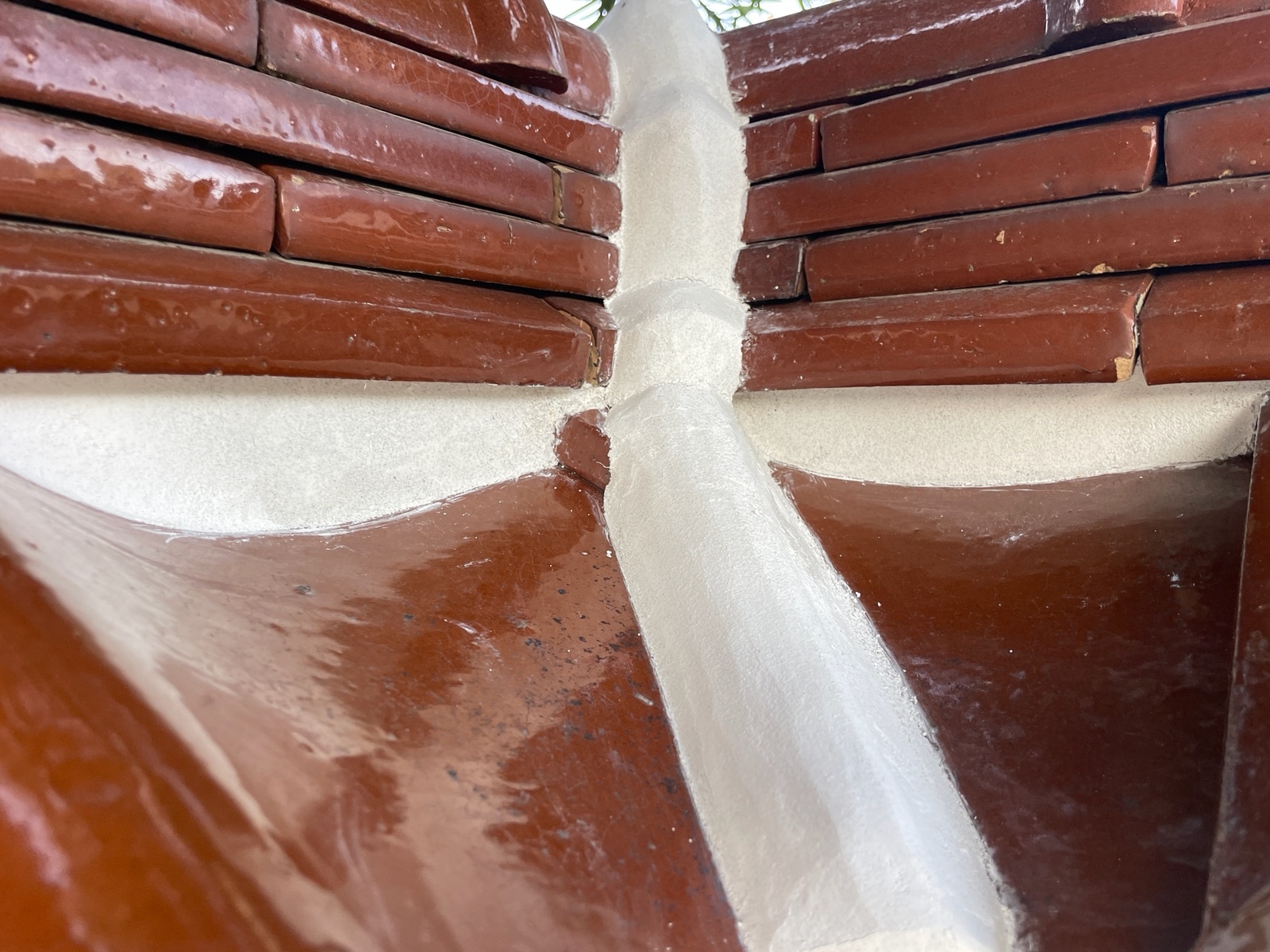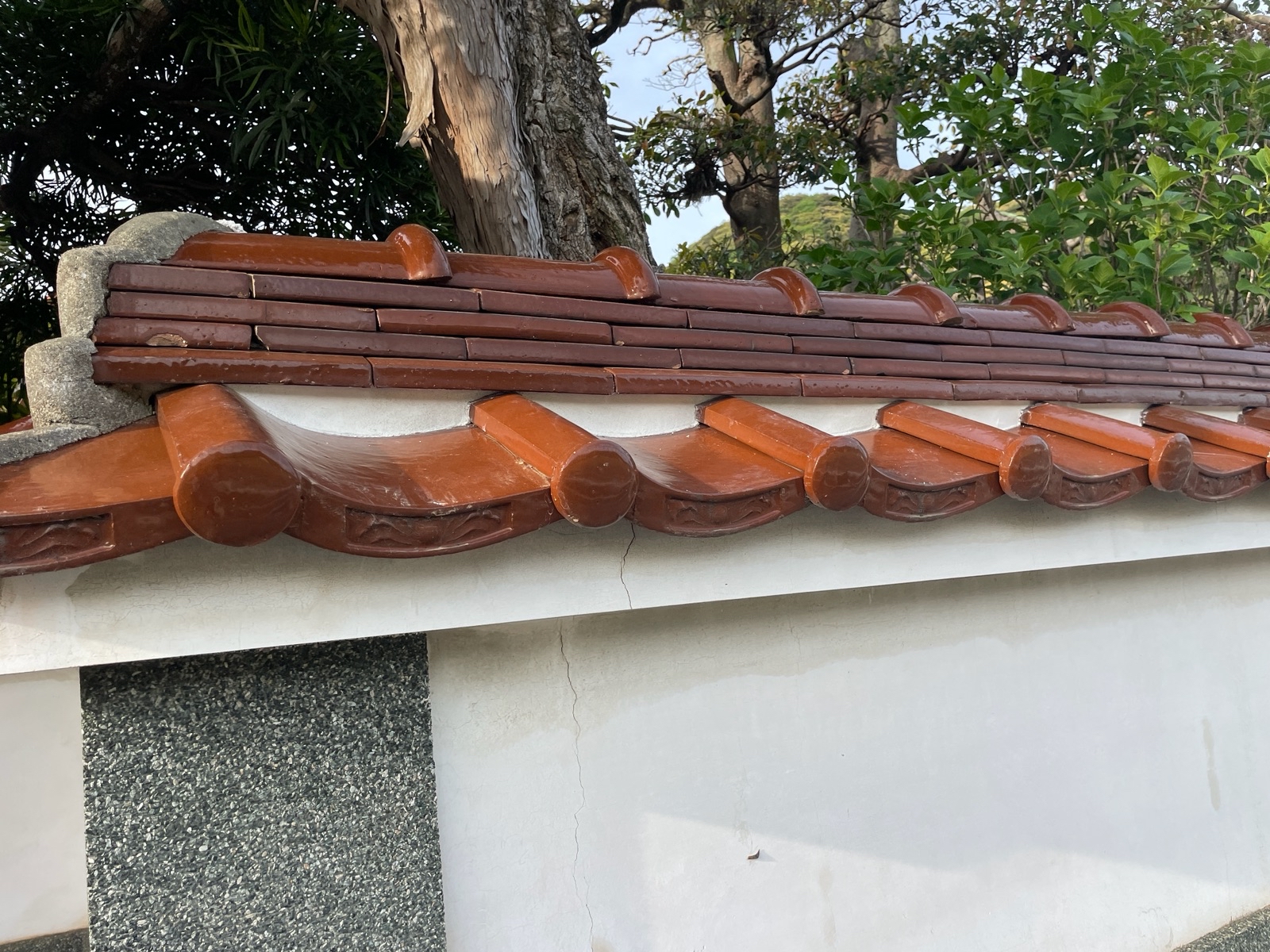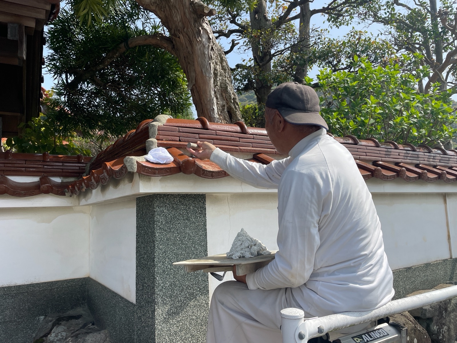 本日も塀の瓦部分の漆喰上塗り工事を行っております!