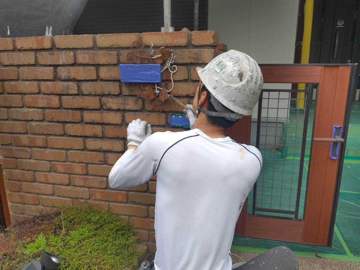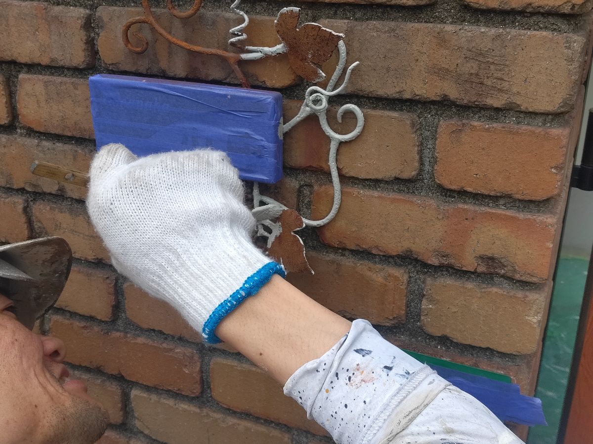 今回は、玄関表札の鉄部も塗装のご依頼を受けておりますので