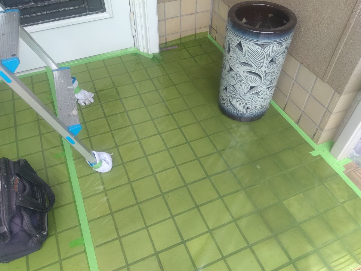 本日は、養生作業、外壁下塗り1回目をさせて頂いております。