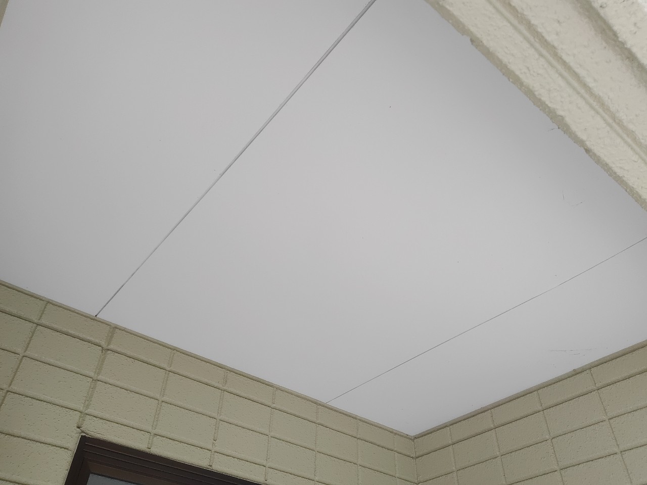 軒天井・・・軒裏天井には透湿性と言って、防カビ・アク止め、湿気を逃がしてくれる効果がある「弱溶剤形一液内外壁用アクリル系上塗材 」と言う塗料を使用しています。