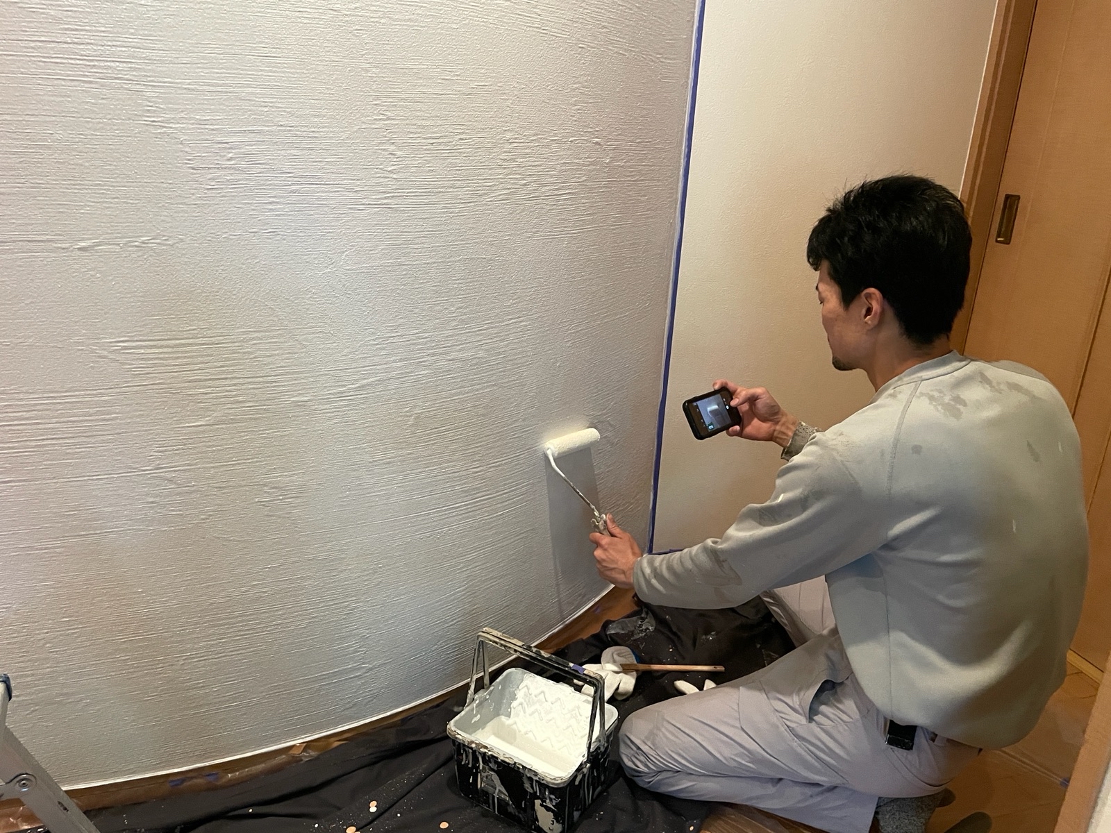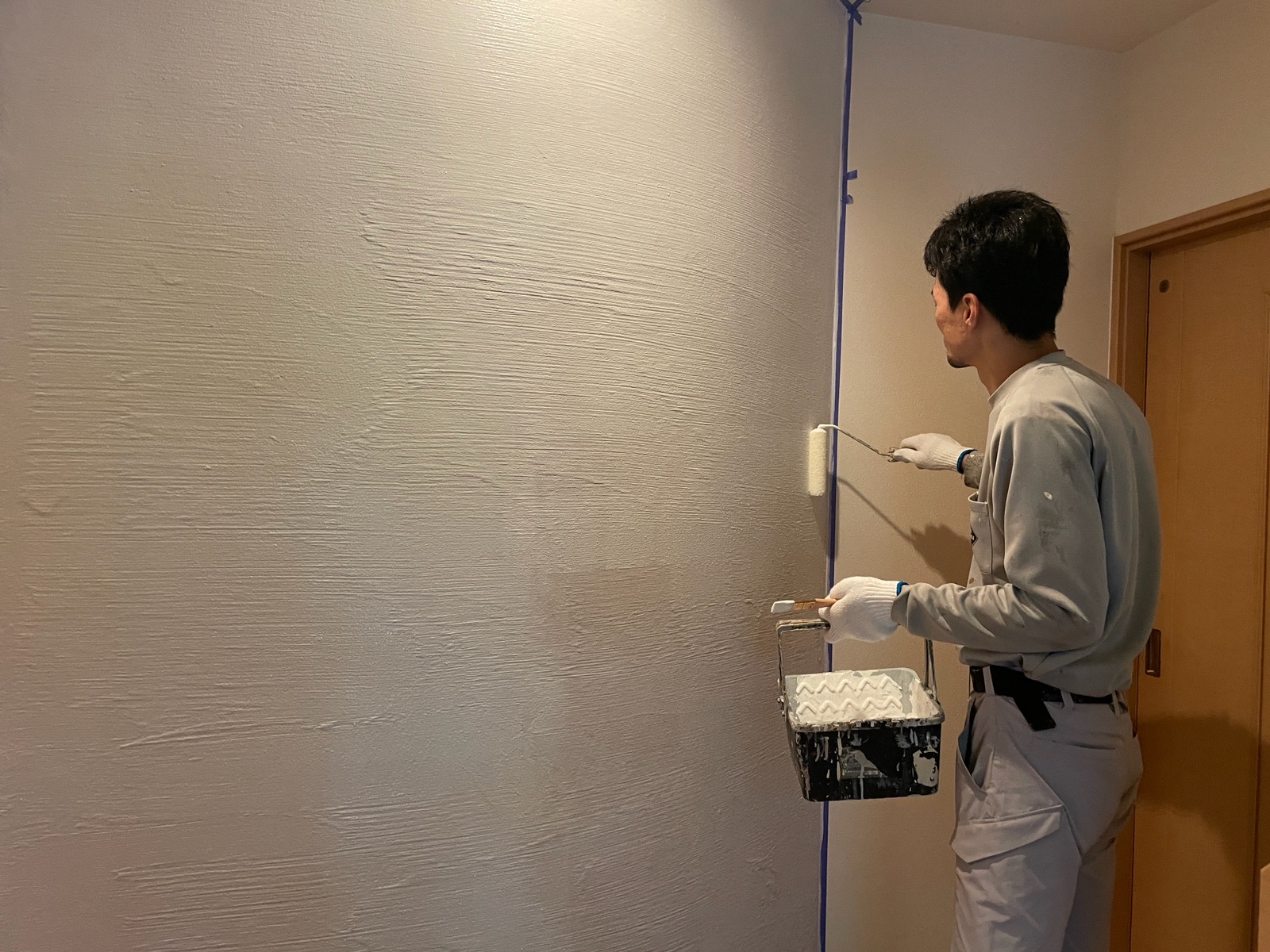 内部壁の下塗りを行っております!